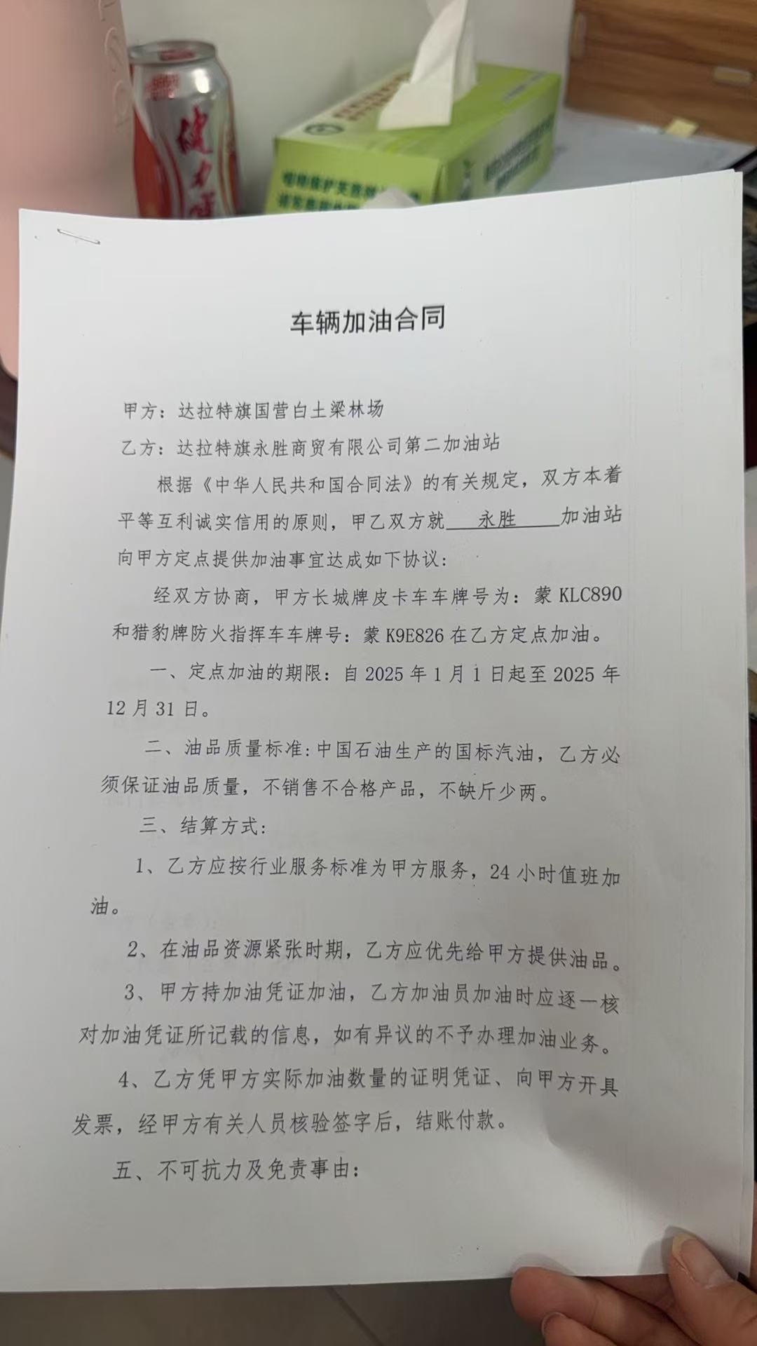 一、合同编号:***二、合同名称:燃油合同三、项目编号:鄂财购备字(电子)[****]*******号四、项目名称:燃油费五、合同主体采购人(甲方):达拉特旗国营白土梁林场 地址:鄂尔多斯市达拉特旗 联系方式:*********** 供应商(乙方):达拉特旗永胜商贸有限公司第二加油站 地址:内蒙古自治区鄂尔多斯市达拉特旗***国道 联系方式:*********** 六、合同主要信息主要标的: