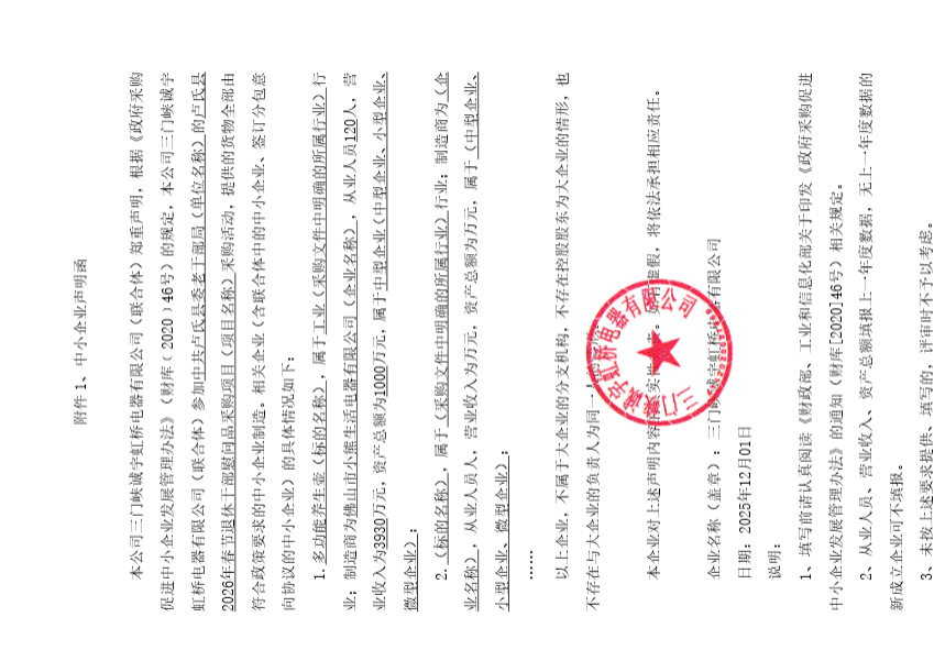| 成交人:三门峡诚宇虹桥电器有限公司 地址:三门峡市黄河路中段四街坊**号楼*层*层商场及地下室(消防支队西侧) 统一机构代码:****************** 法定代表人:杨洪杰 项目负责人:杨洪杰、联系电话:*********** 本公告公示期为*个工作日。供应商对成交结果有异议的,可以在本成交公告公示期(*个工作日)满后*个工作日内,以书面形式向采购代理机构提出质疑(法定代表人签字并加盖单位公章),由法定代表人或其授权代表携带企业营业执照(加盖公章)及本人身份证件一并提交,并以质疑函接受的确认日期作为受理时间,逾期未提交或未按照要求提交的质疑函将不予受理。 | |||||||||||||||||||||||||||||||
