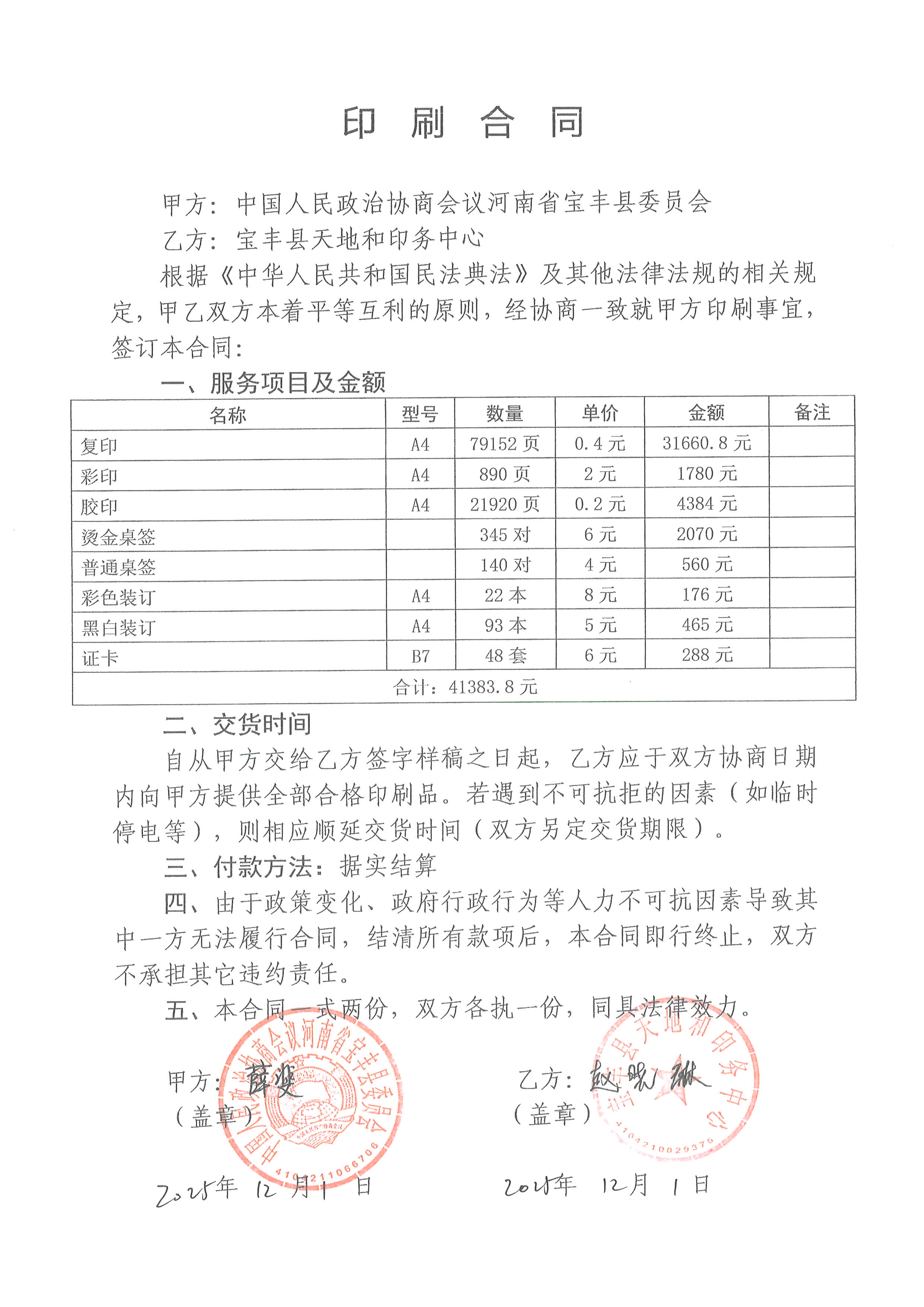 | *.供应商(乙方):宝丰县天地和印务中心 | ||||||||||||