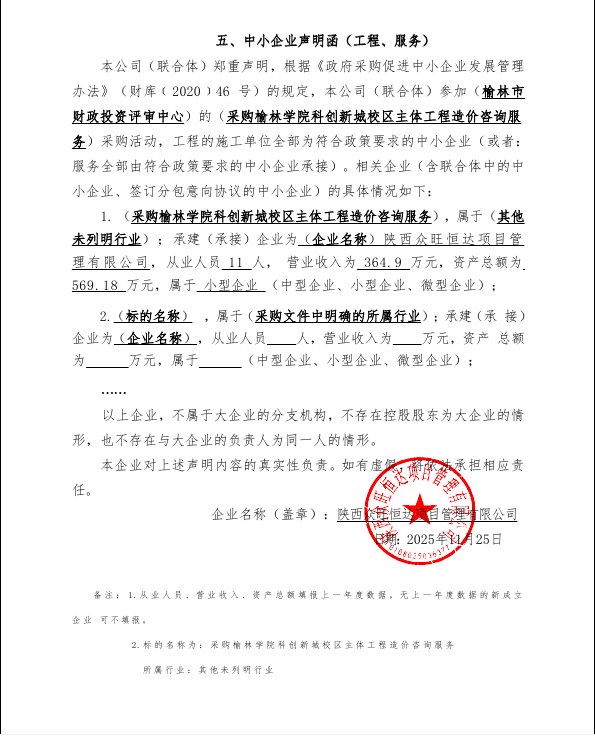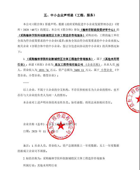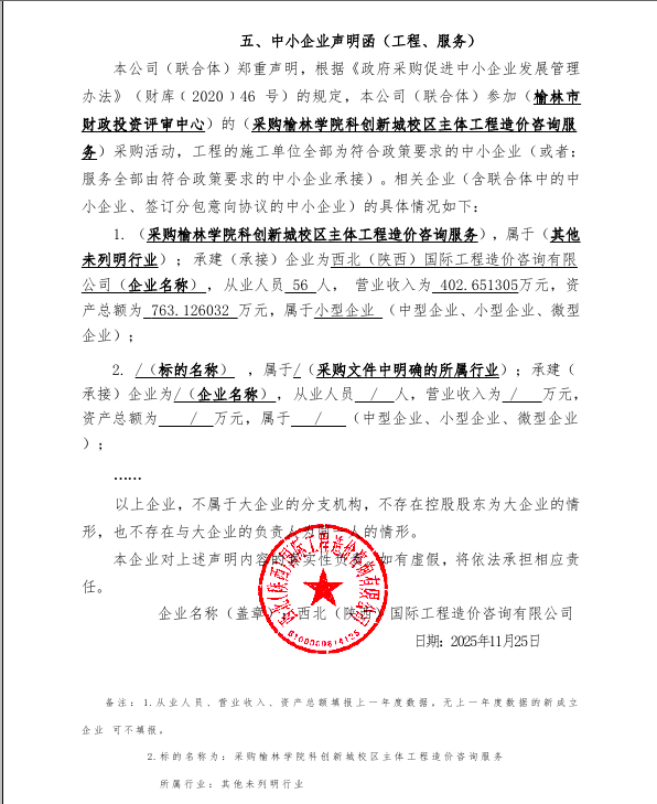 二、项目名称:采购榆林学院科创新城校区主体工程造价咨询服务