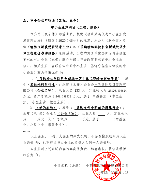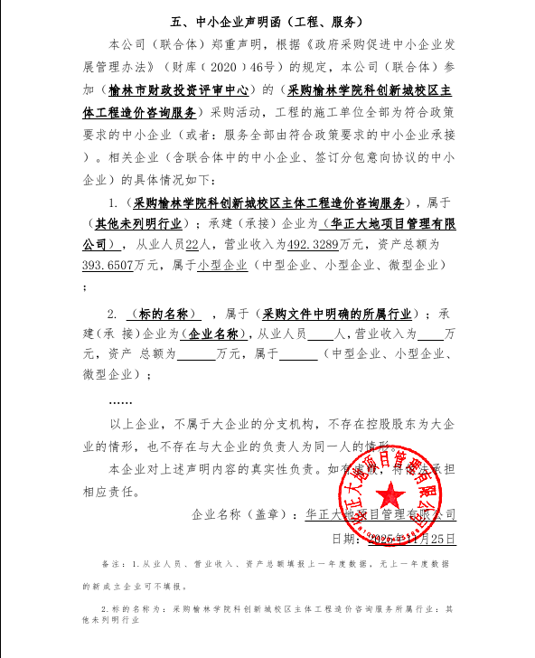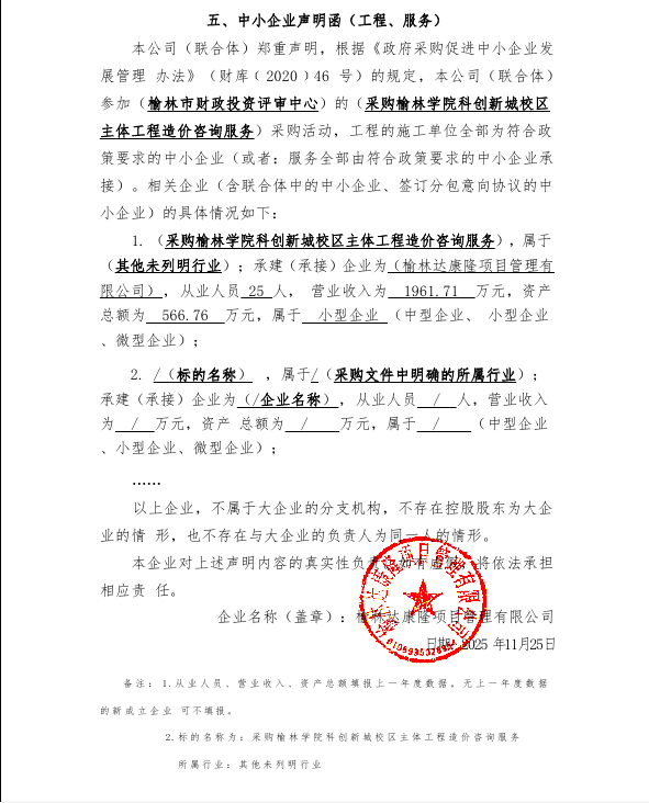 服务类(榆林达康隆项目管理有限公司)