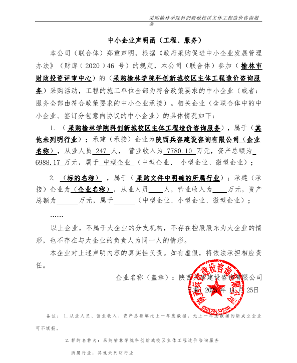 服务类(陕西兵咨建设咨询有限公司)