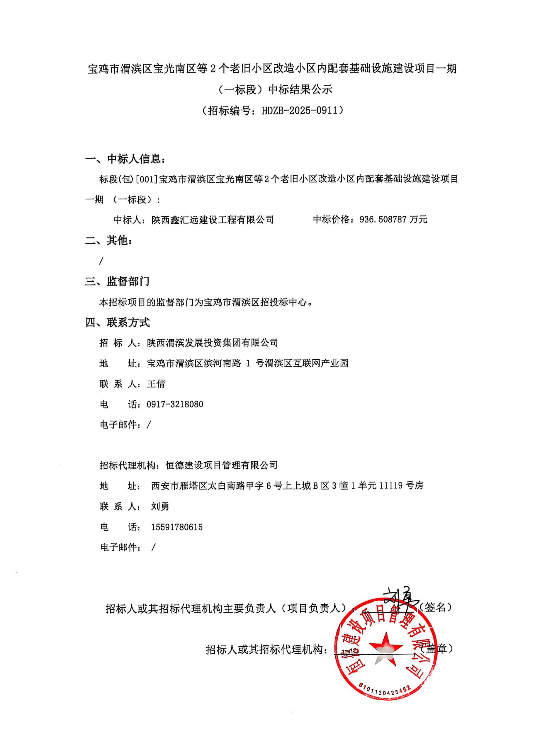 宝光南区等*个老旧小区改造小区内配套基础设施建设项目一期一标段中标结果公示
