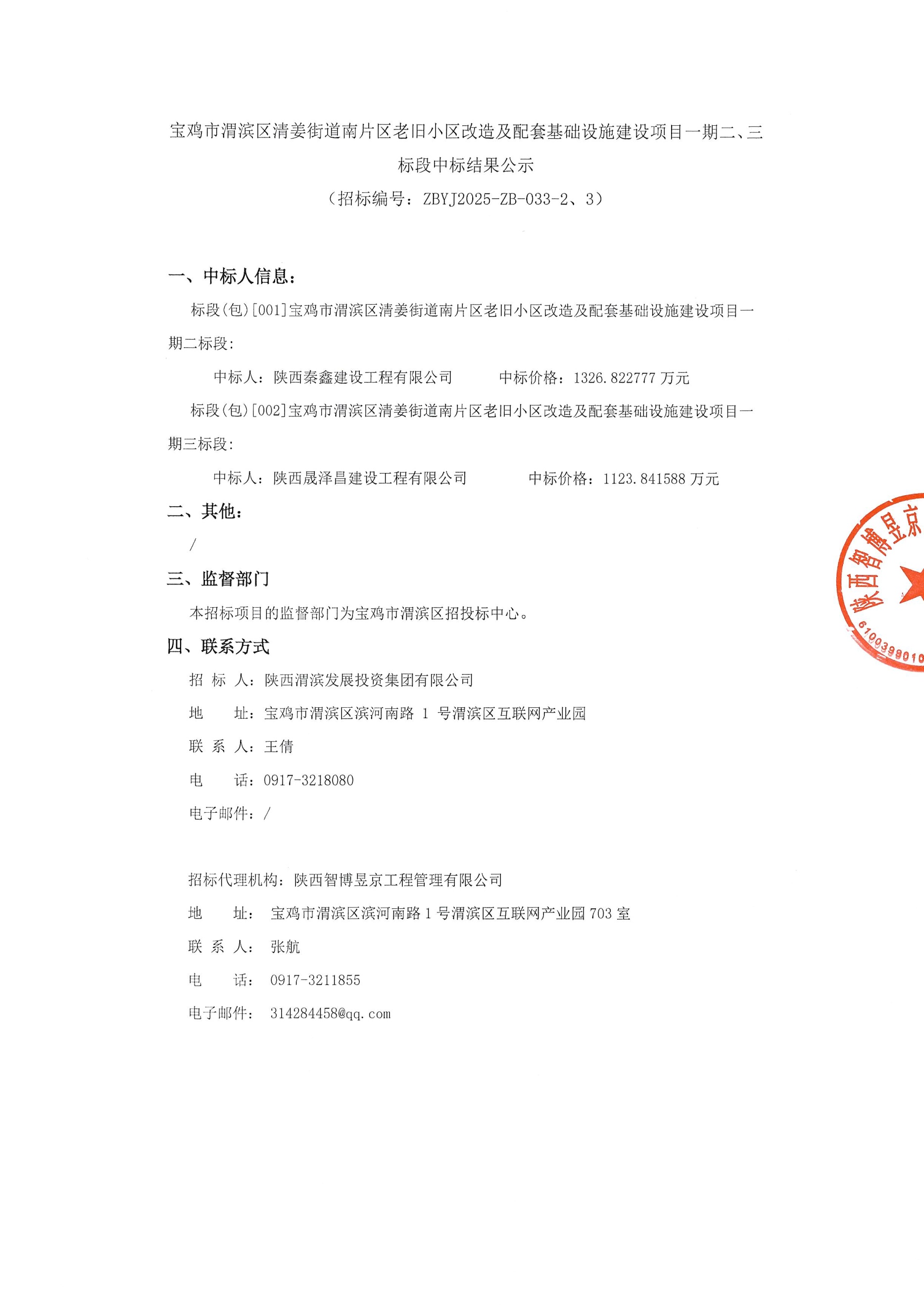 清姜街道南片区老旧小区改造及配套基础设施建设项目一期二、三标段中标结果公示