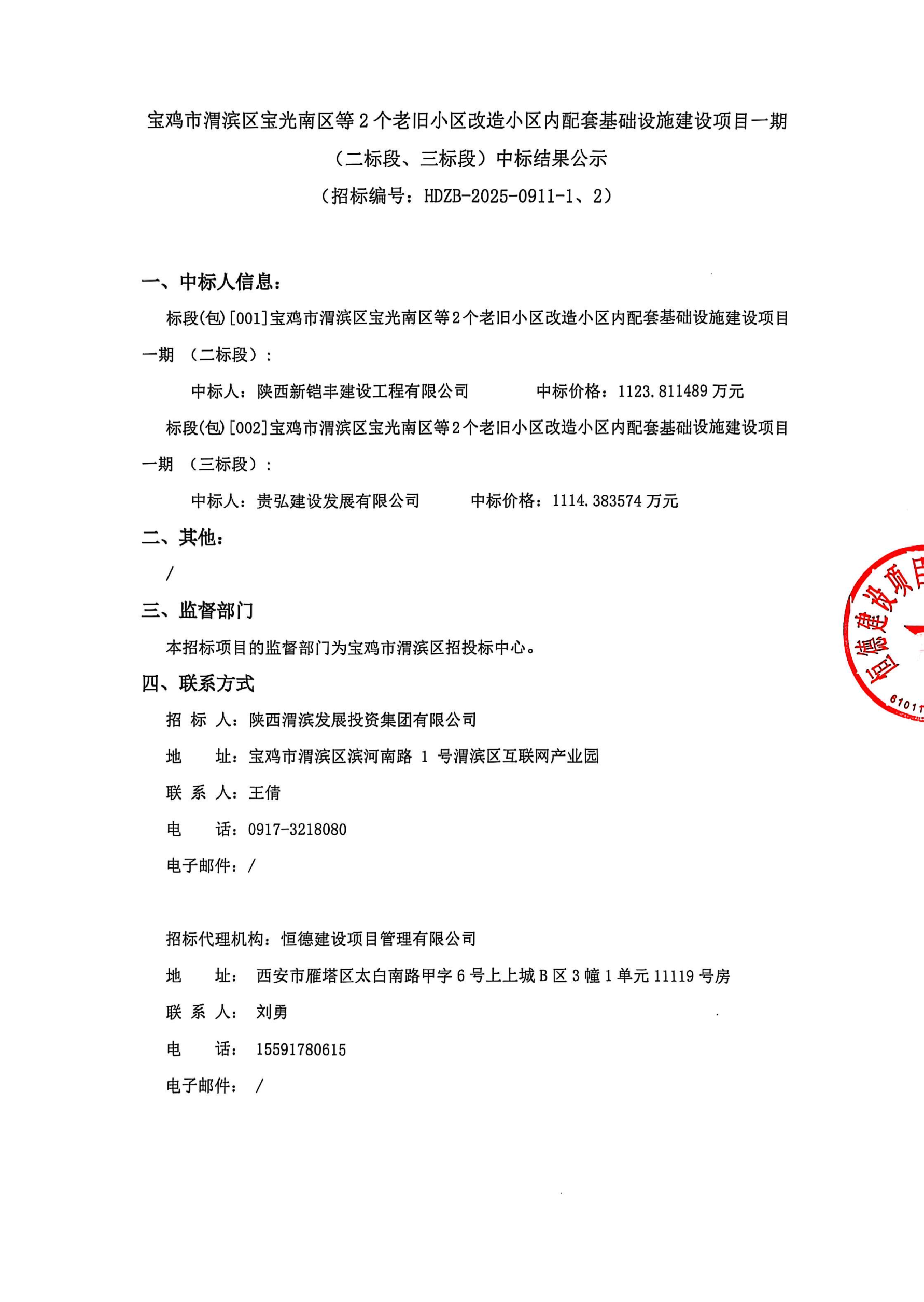 宝光南区等*个老旧小区改造小区内配套基础设施建设项目一期二、三标段中标结果公示