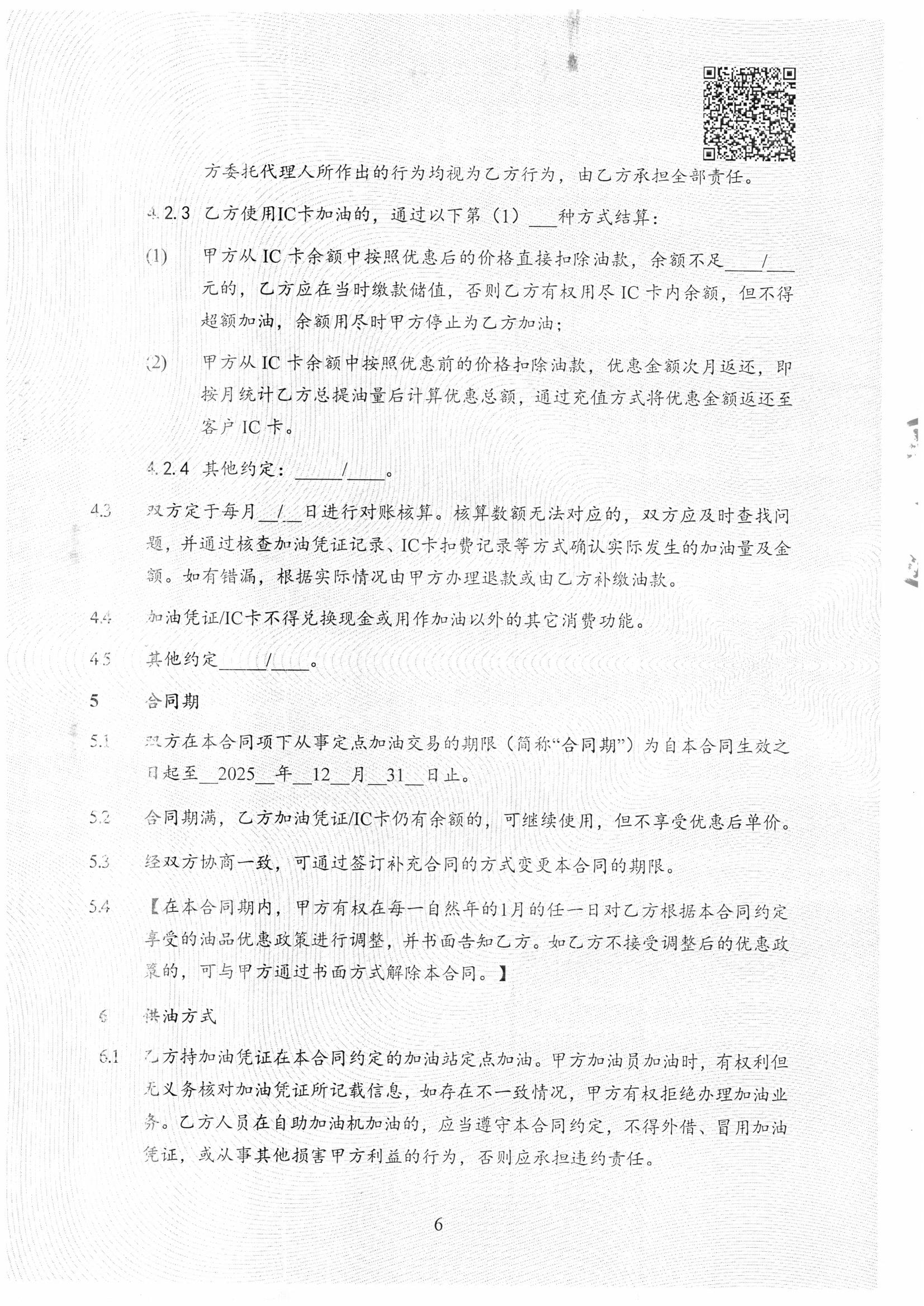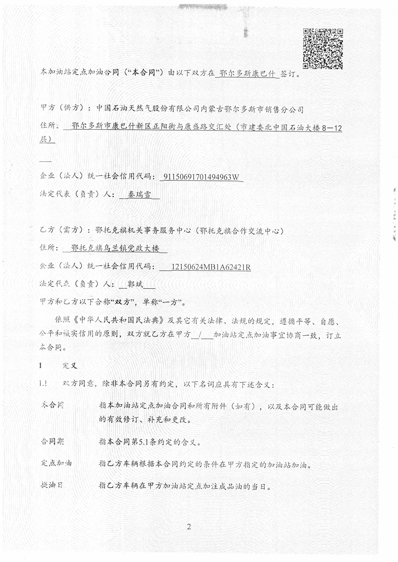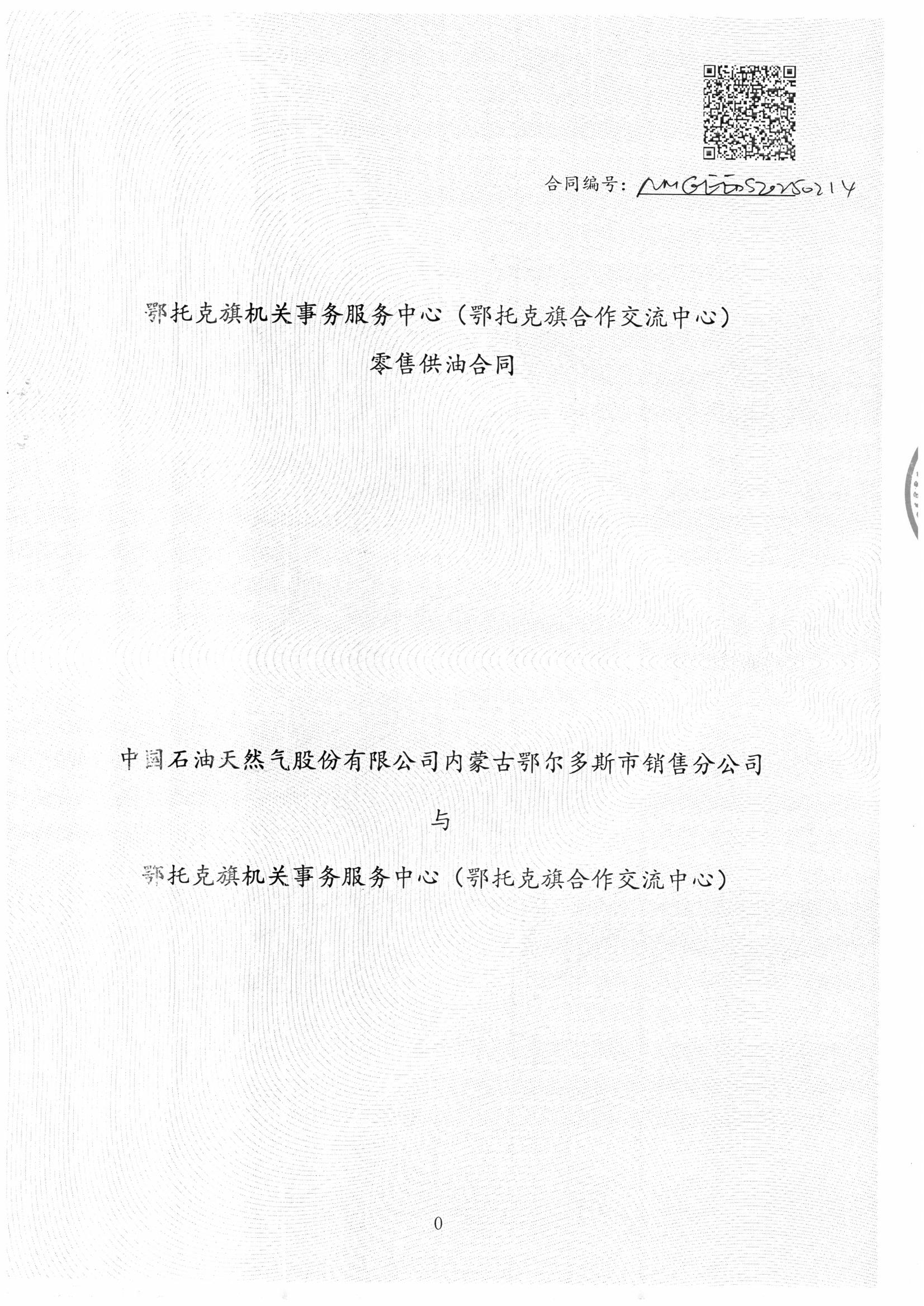 一、合同编号:无二、合同名称:零售供油合同三、项目编号:鄂财购备字(电子)[****]*******号四、项目名称:公务用车加油服务(中石油)五、合同主体采购人(甲方):鄂托克旗机关事务服务中心 地址:鄂托克旗乌兰镇 联系方式:*********** 供应商(乙方):中国石油天然气股份有限公司内蒙古鄂尔多斯市销售分公司 地址:内蒙古自治区鄂尔多斯市康巴什区正阳街与康盛路交汇处 联系方式:*********** 六、合同主要信息主要标的: