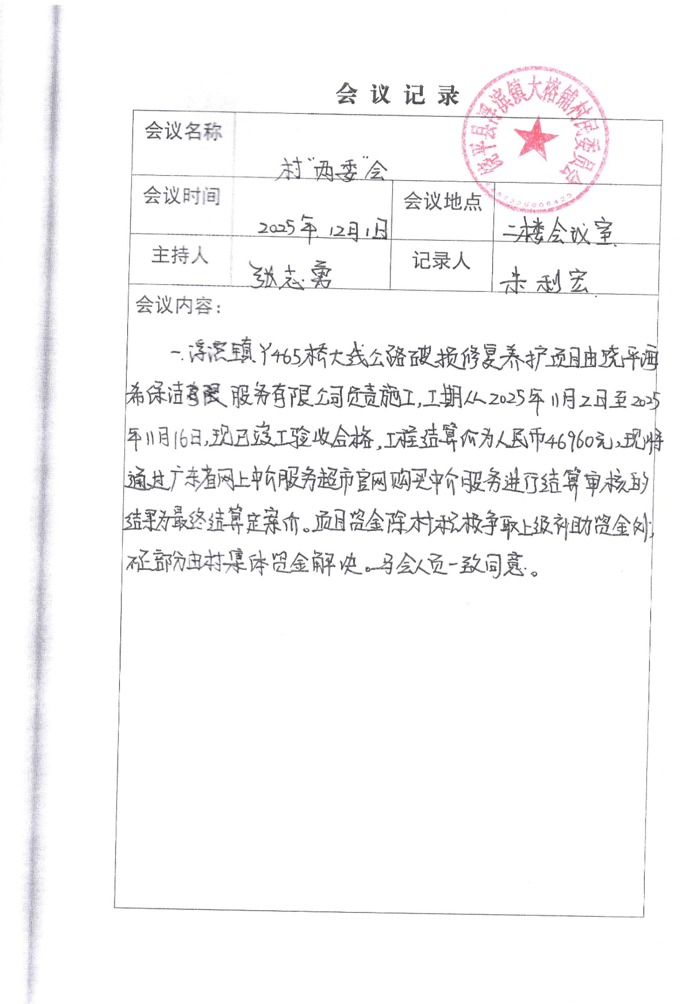 协助开展对浮滨镇****桥大线公路破损修复养护项目工程建安费的结算审核,工程项目地址:饶平县浮滨镇****桥大线公路,工程内容:主要建设内容是对浮滨镇****桥大线公路破损进行修复养护,浇筑***砼混凝土***平方米及暗敷水泥涵管**米。工期从****年**月*日开始施工,至****年**月**日。现已竣工验收合格,结算金额为*****元。项目资金除村积极争取上级补助资金外,不足部分由村自筹解决。