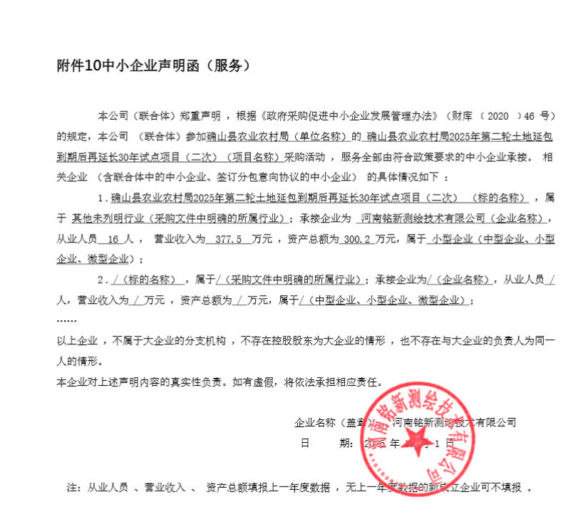 确山县农业农村局2025年第二轮土地延包到期后再延长30年试点项目(二次)-中标公告