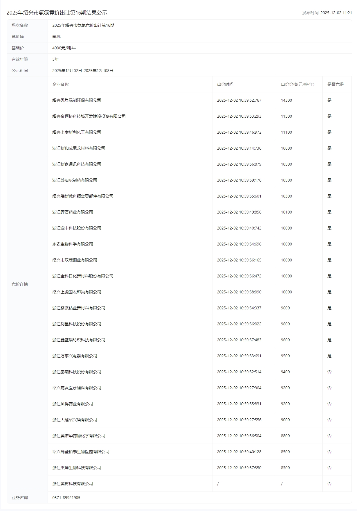 竞价出让第16期结果公示