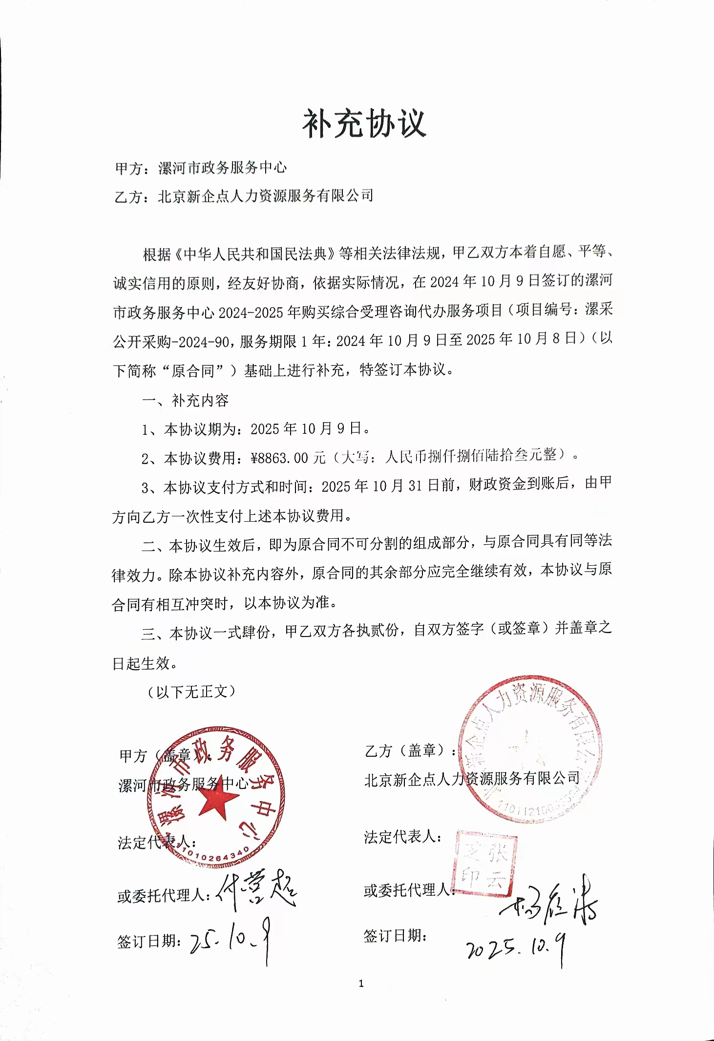 综合受理咨询代办服务项目2025.10.9补充协议