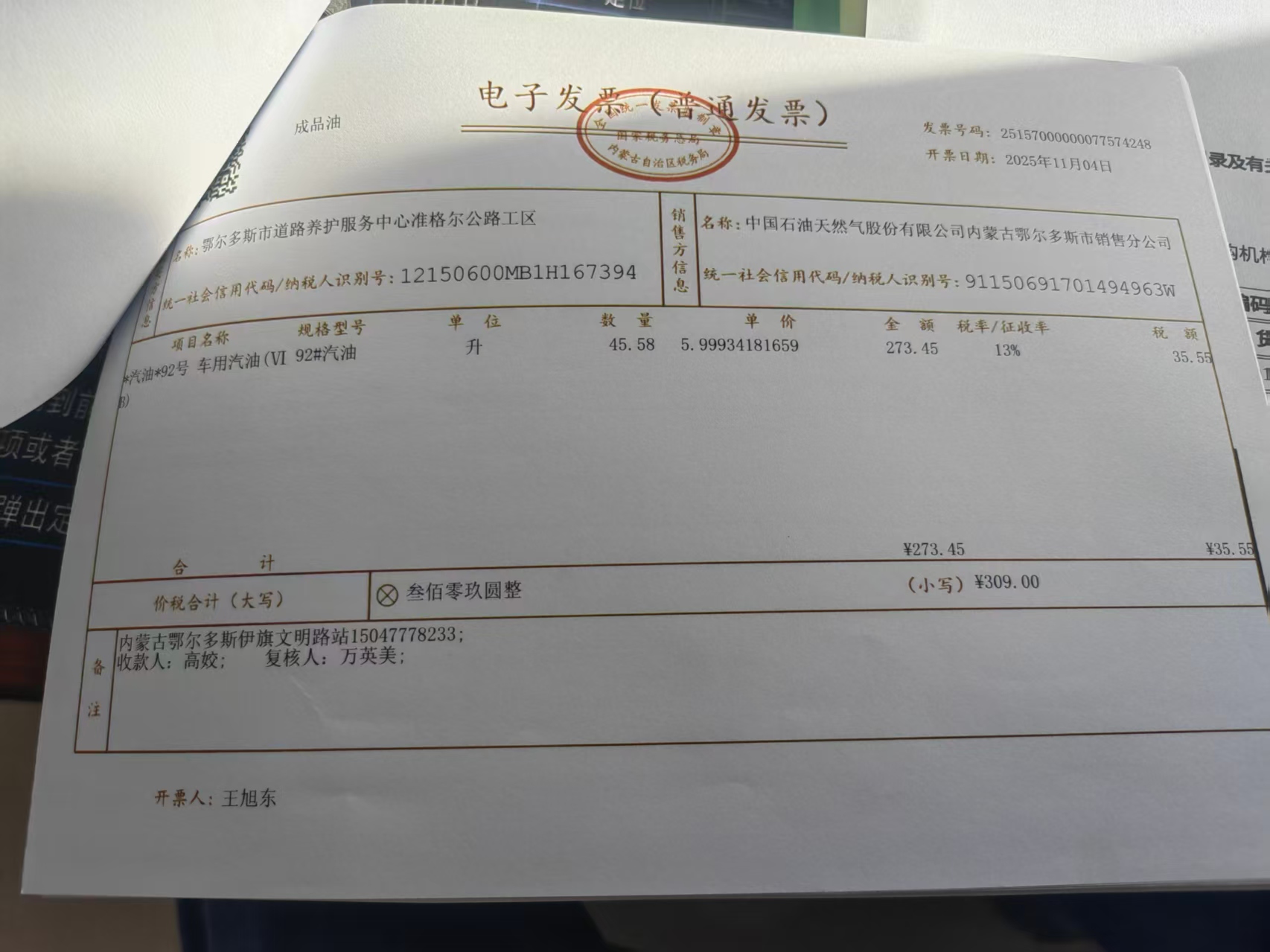 鄂尔多斯市道路养护服务中心准格尔公路工区蒙KFA9758油料费政府采购合同公告