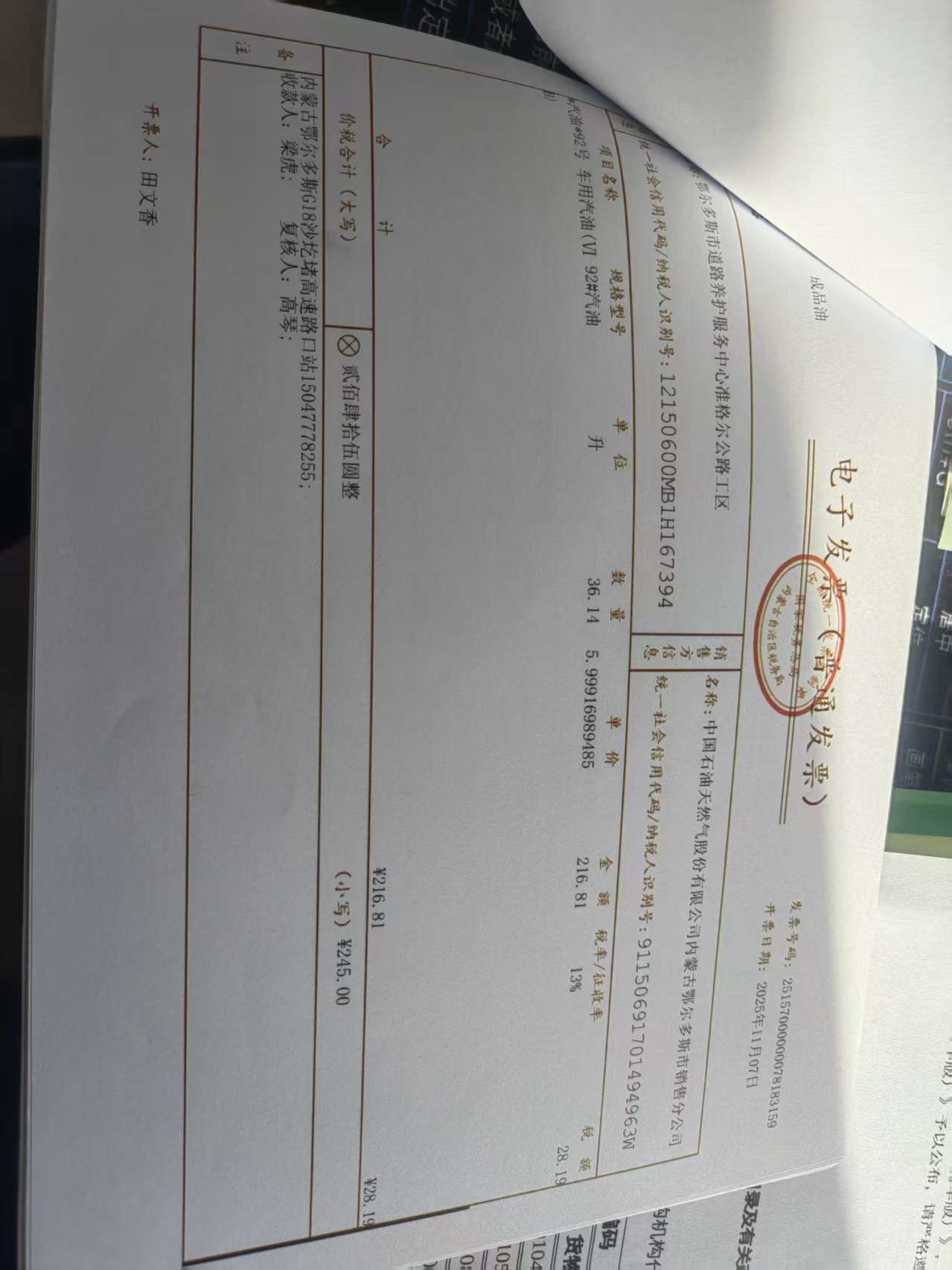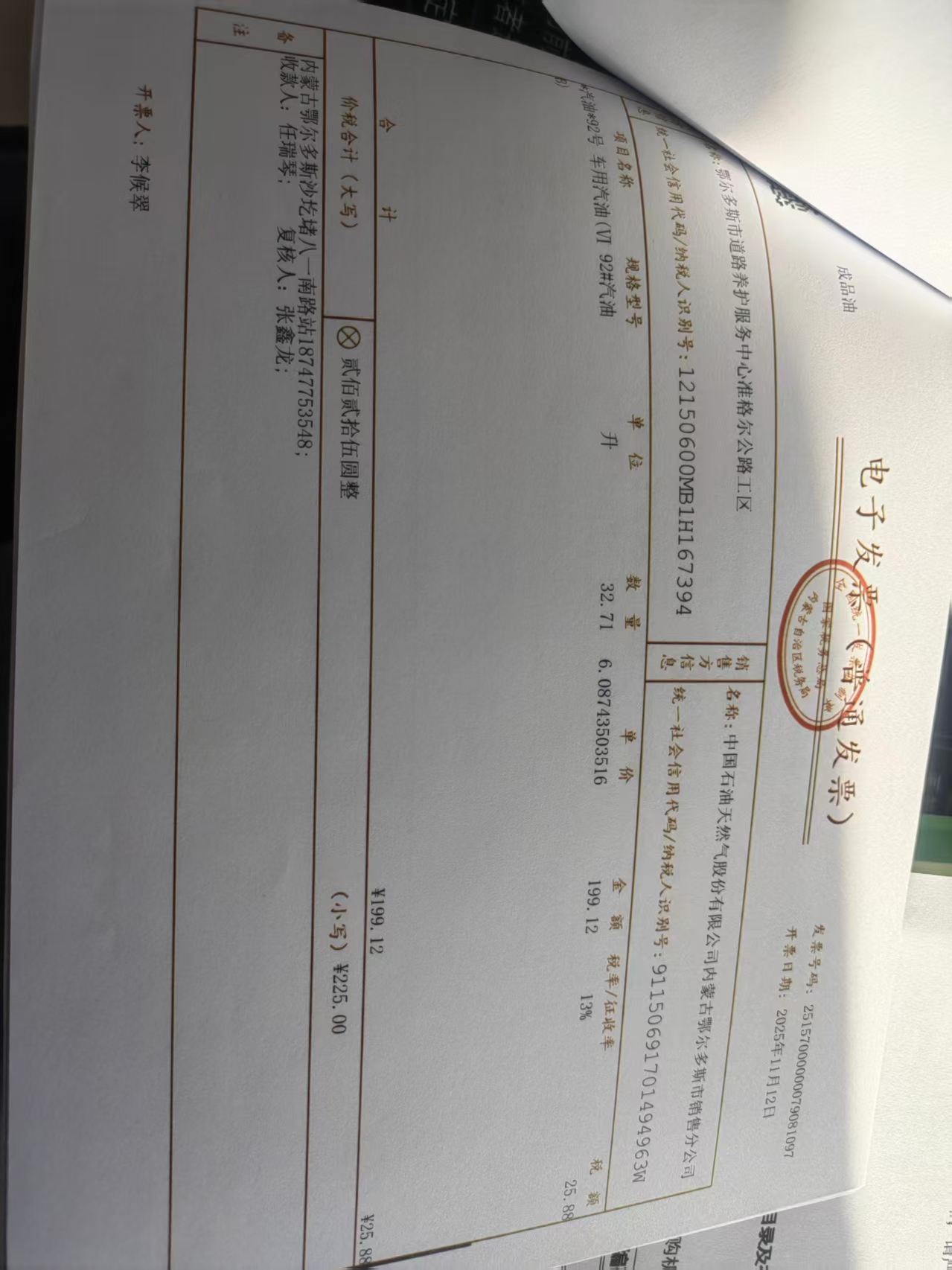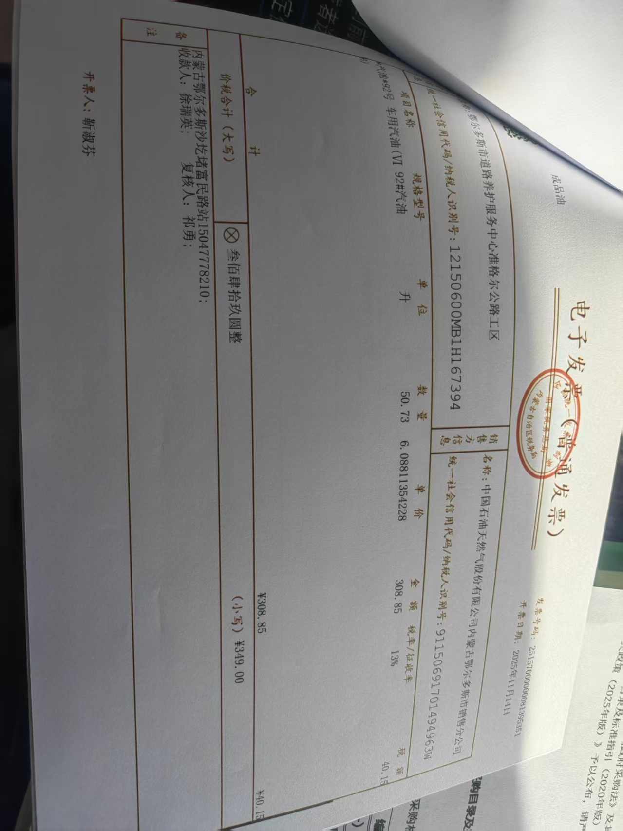 鄂尔多斯市道路养护服务中心准格尔公路工区蒙*******油料费政府采购合同公告