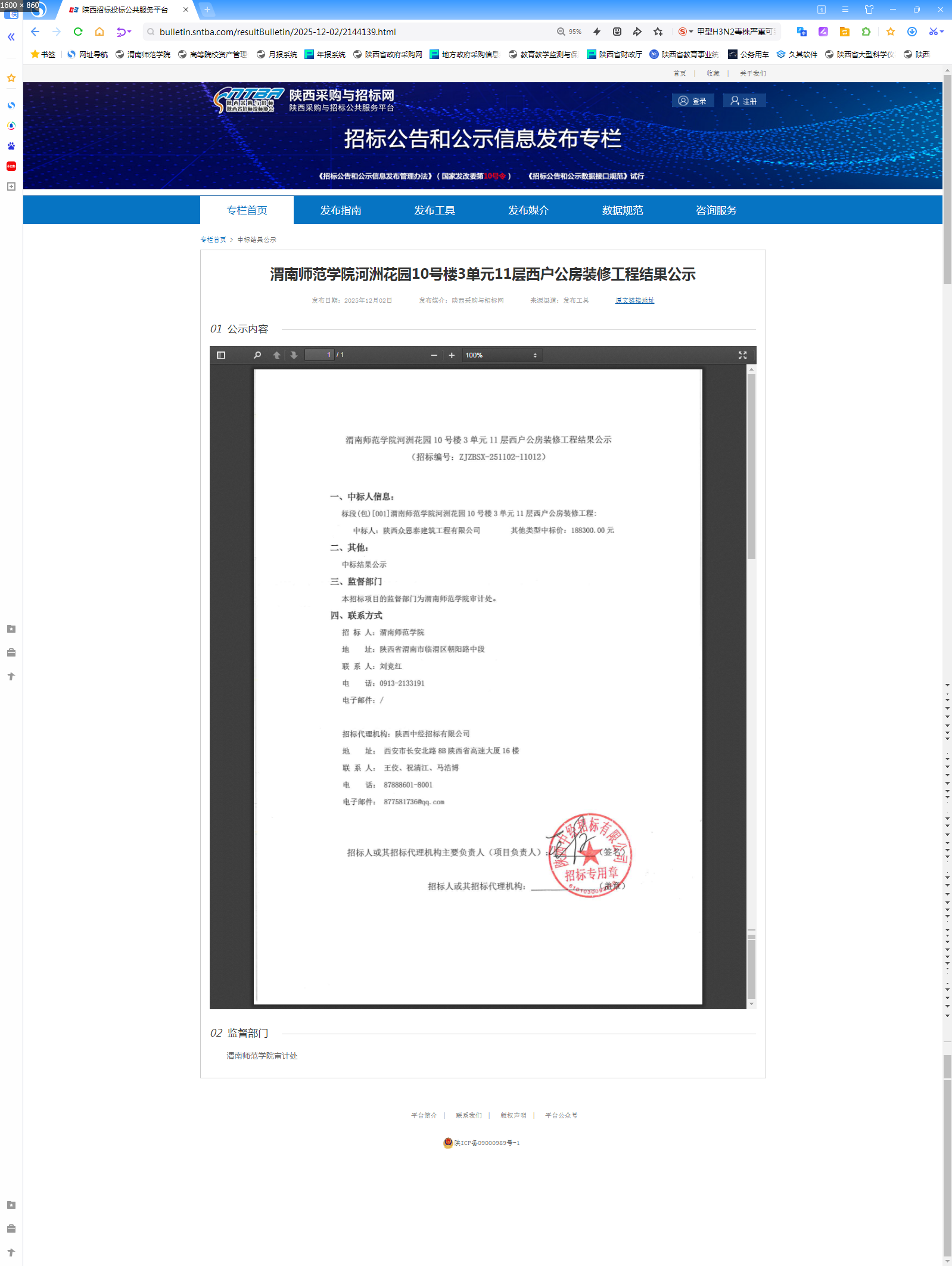 渭南师范学院河洲花园10号楼3单元11层西户公房装修工程结果公示