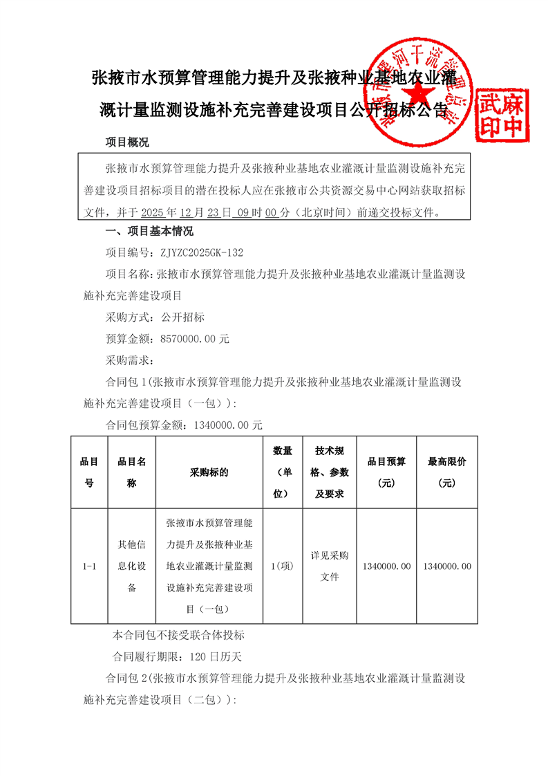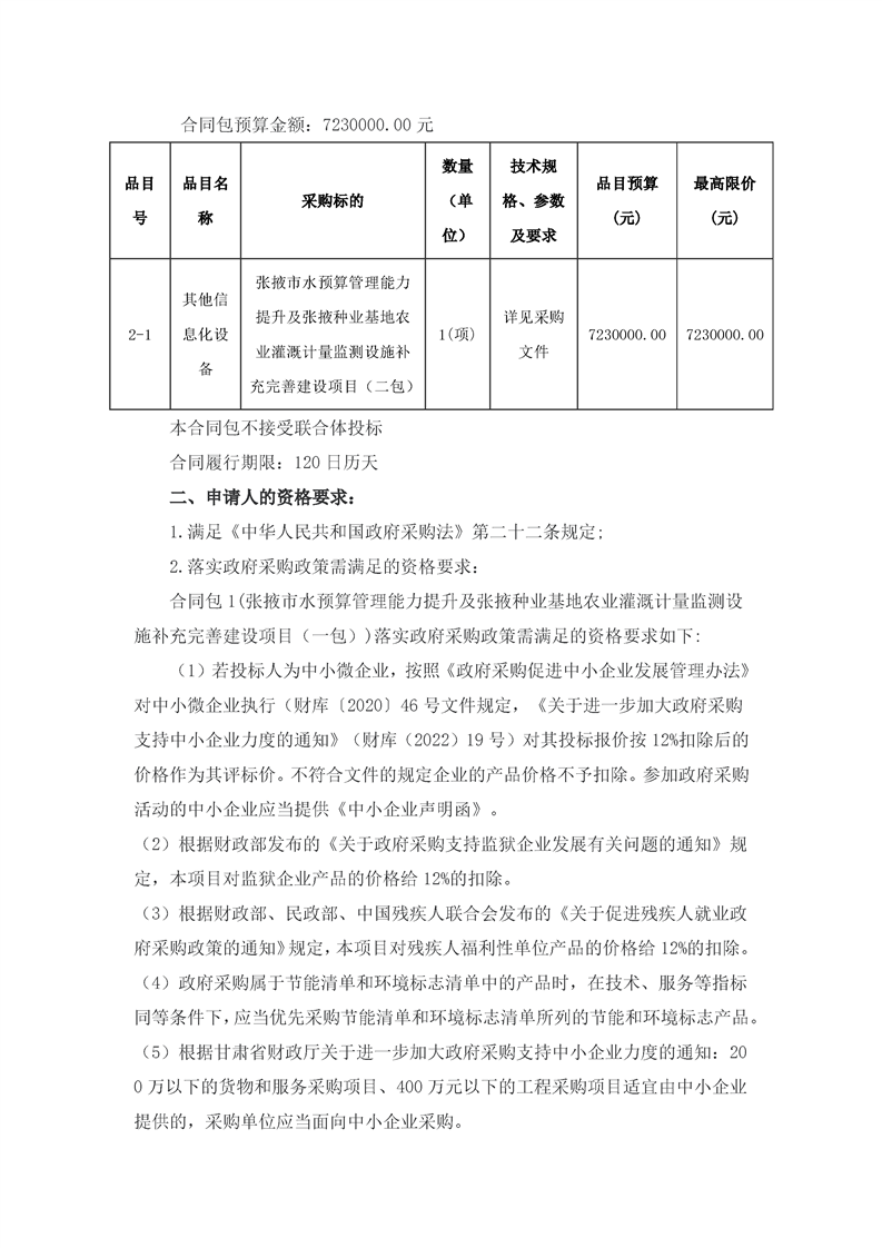 张掖市水预算管理能力提升及张掖种业基地农业灌溉计量监测设施补充完善建设项目