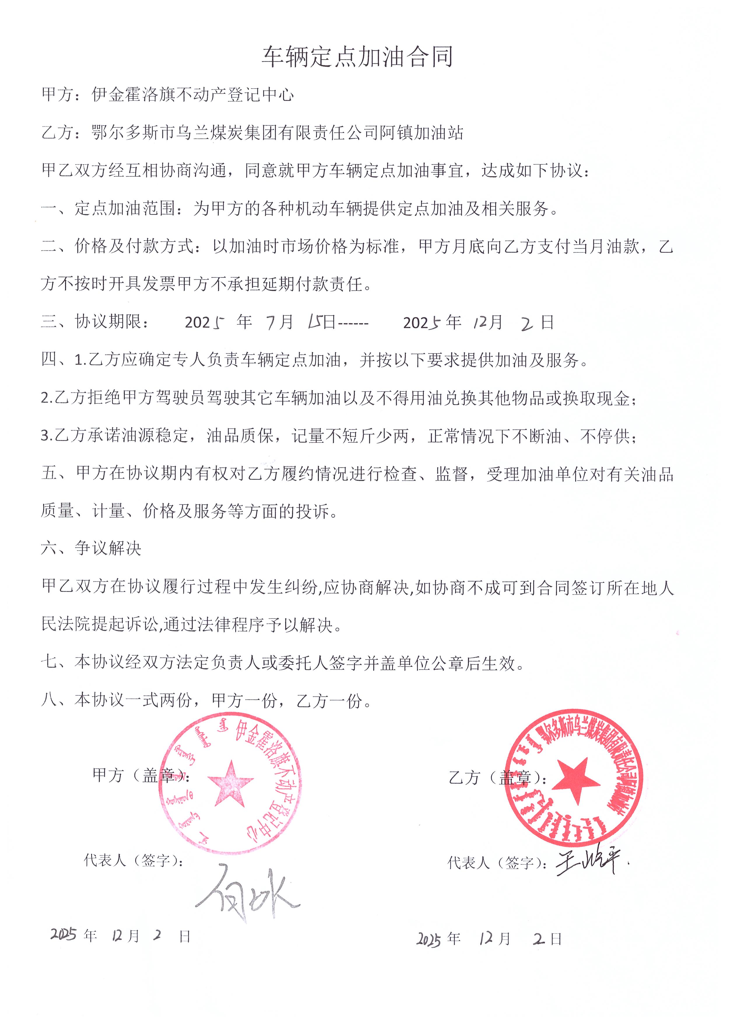 伊金霍洛旗不动产登记中心车辆定点加油合同政府采购合同公告