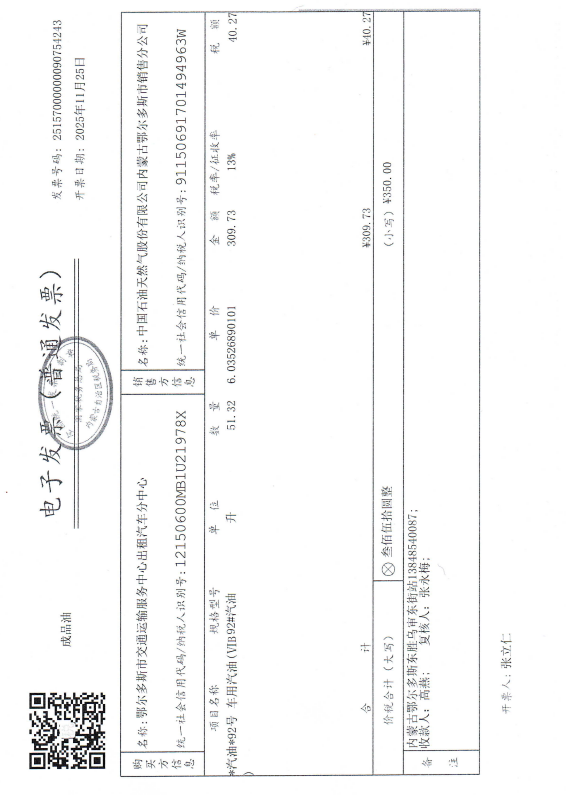 合同金额: ***.**元,大写(人民币):叁佰伍拾元整 履约期限:****年**月**日至****年**月**日 履约地点:鄂尔多斯市 采购方式: 七、合同签订日期****年**月**日 八、合同公告日期****年**月**日 九、其他补充事宜