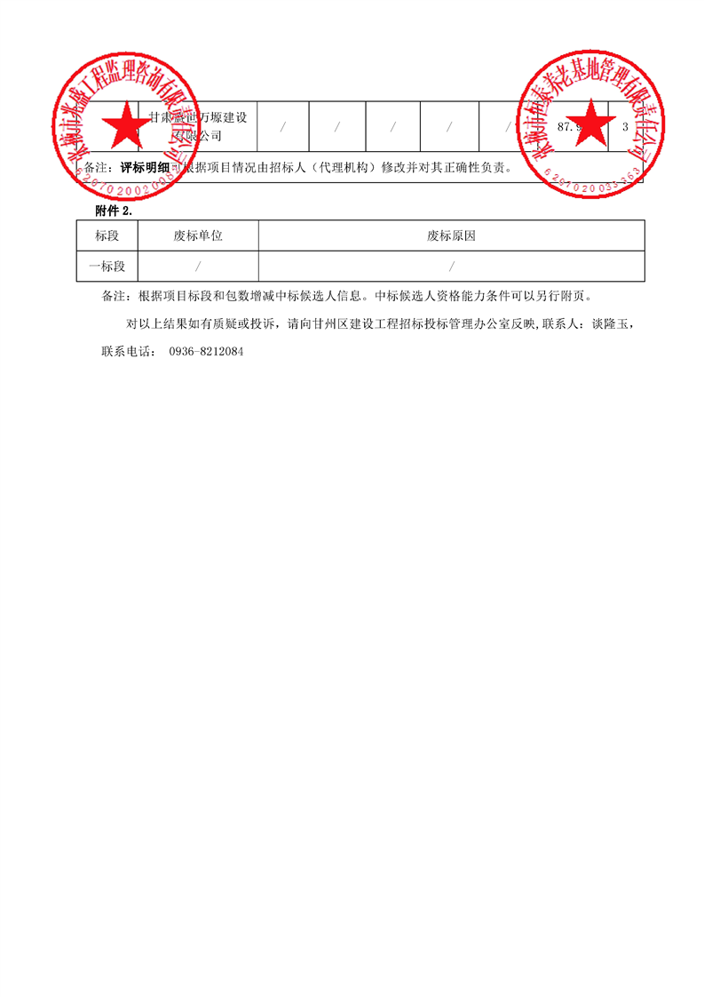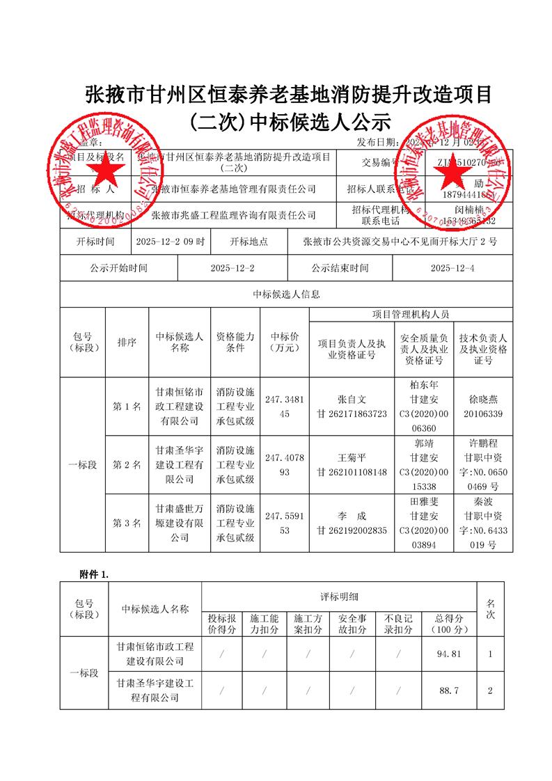 [市本级]张掖市甘州区恒泰养老基地消防提升改造项目(二次)中标候选人公示