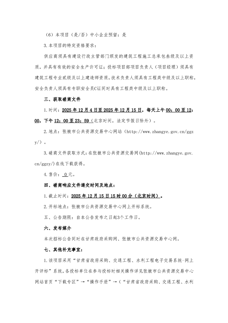交易平台:张掖市公共资源交易中心临泽县分中心招标/采购项目编号:********************投标登记截止时间:********** **:**:**