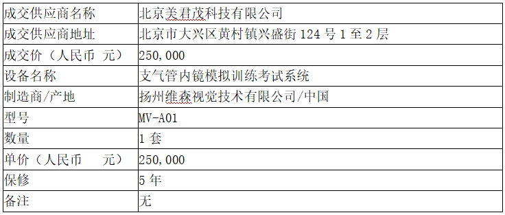 中日友好医院****年支气管内镜模拟训练考试系统采购项目成交结果公告