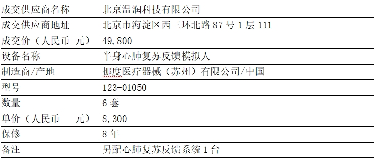 中日友好医院****年半身心肺复苏反馈模拟人采购项目成交结果公告