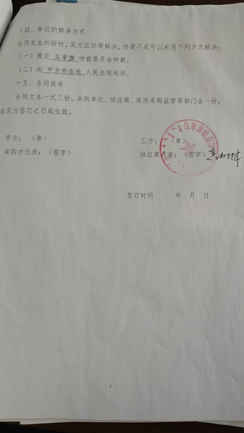 合同金额: *,***.**元,大写(人民币):柒仟肆佰贰拾元整 履约期限:****年**月**日至****年**月**日 履约地点:乌审旗嘎鲁图镇党政新区**号楼 采购方式: 七、合同签订日期****年**月**日 八、合同公告日期****年**月**日 九、其他补充事宜