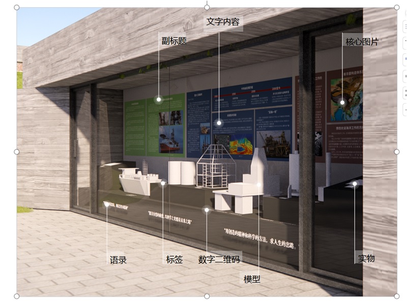 *.根据甲方提供的素材和思路,完善室内外展区的展览整体设计(空间、展柜、展墙、展板等)。