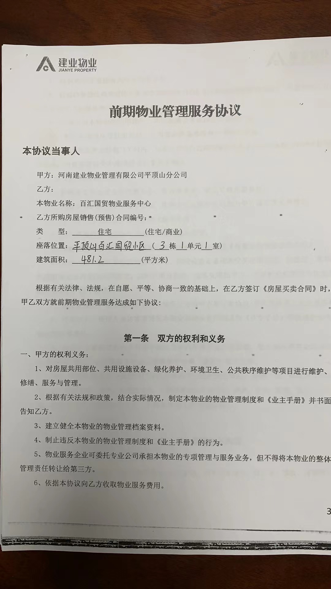 | *.供应商(乙方):河南建业物业管理有限公司平顶山分公司 | ||||||||||||