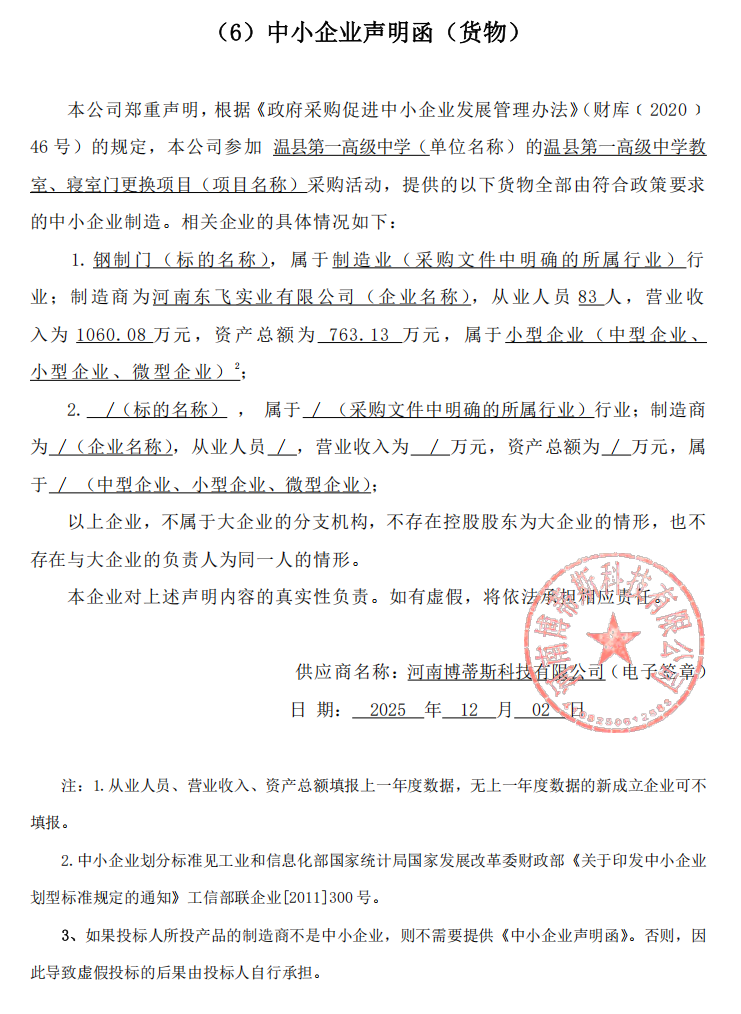 | *、采购项目名称:温县第一高级中学教室、寝室门更换项目 | |||||||||||||||||||||||||||||||
