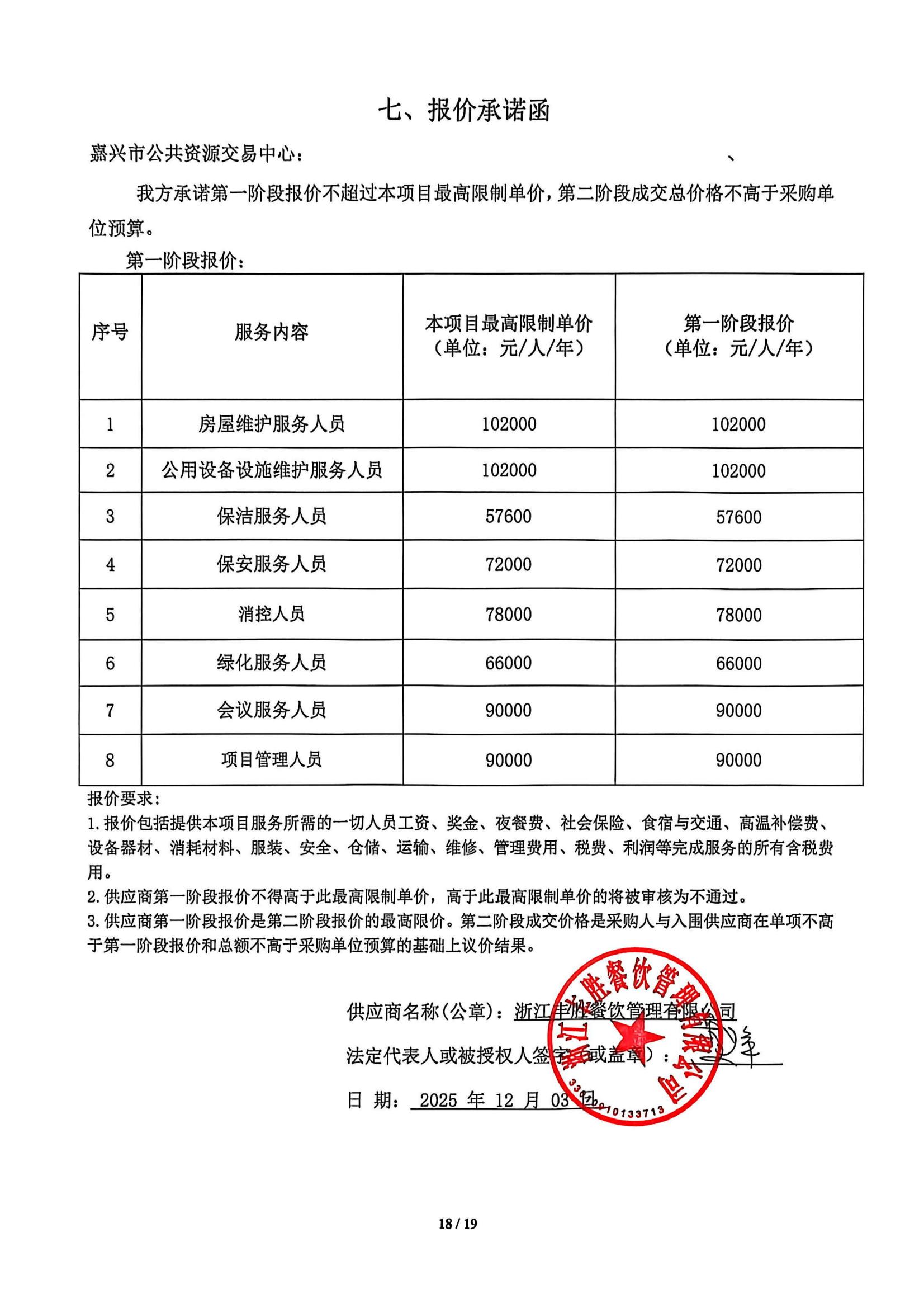 浙江丰胜餐饮管理有限公司入围2025-2026年度嘉兴市级(含三区)行政事业单位物业管理服务开放式框架协议采购项目的结果公告