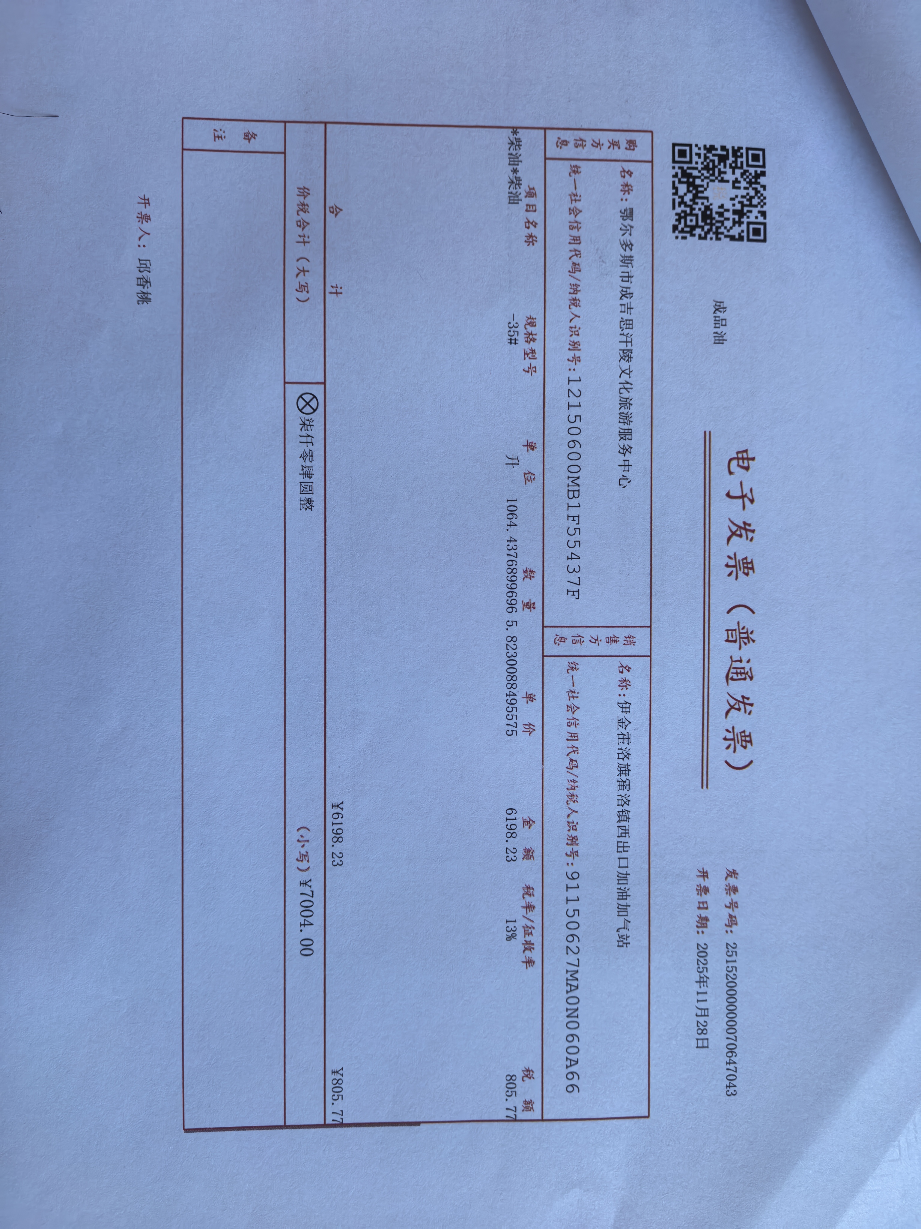 鄂尔多斯市成吉思汗陵文化旅游服务中心燃料费20251204政府采购合同公告
