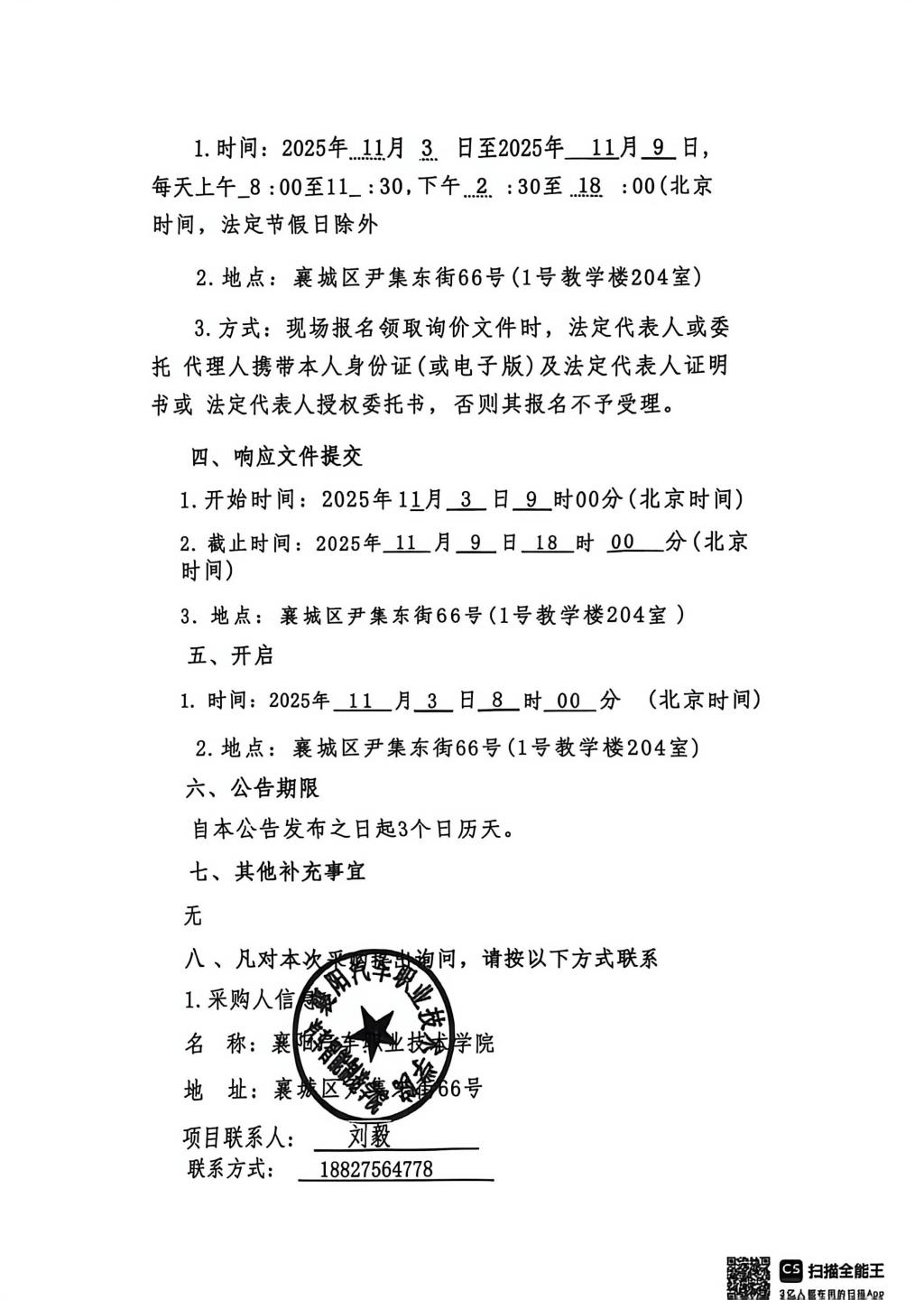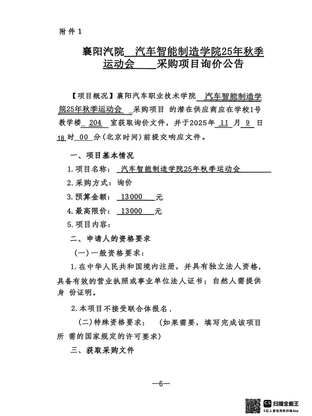 襄阳汽院汽车智能制造学院25年秋季运动会采购项目询价公告