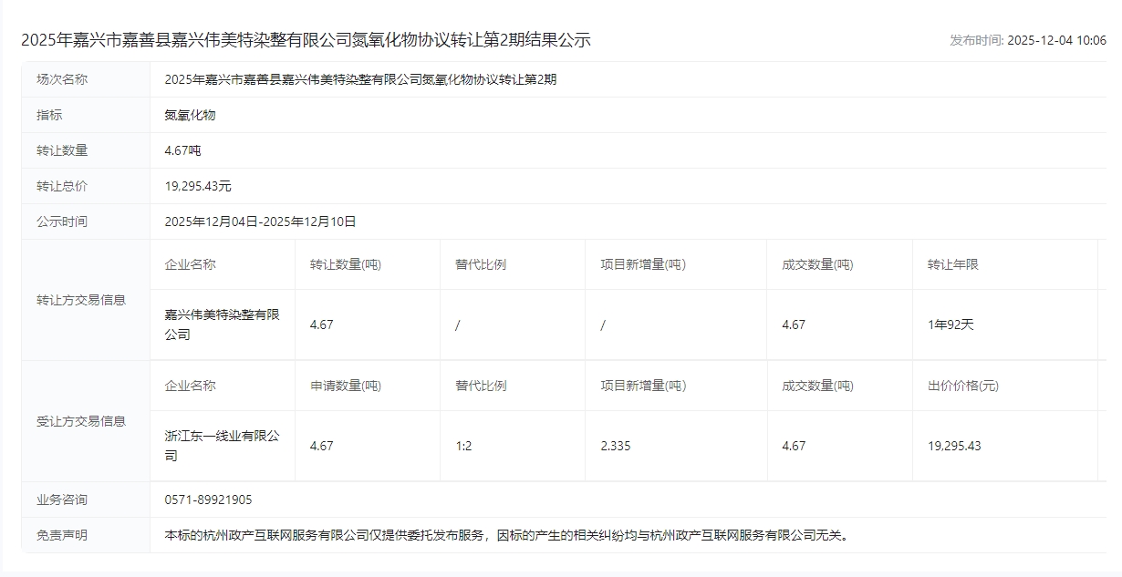 有限公司氮氧化物协议转让第2期结果公示成交公示
