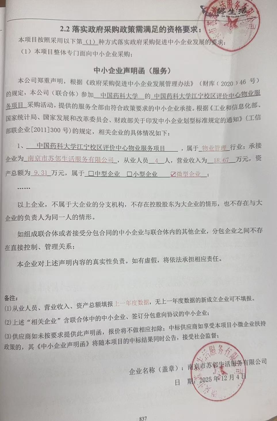 二、项目名称:中国药科大学江宁校区评价中心物业服务项目