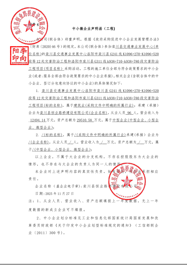 *、项目名称:栾川县交通事业发展中心洛阳市栾川县****线 *****+*********+***段等**处灾害防治工程和洛阳市栾川县****线****+********+***段灾害防治工程项目