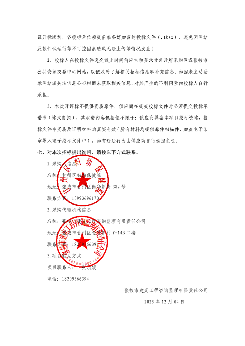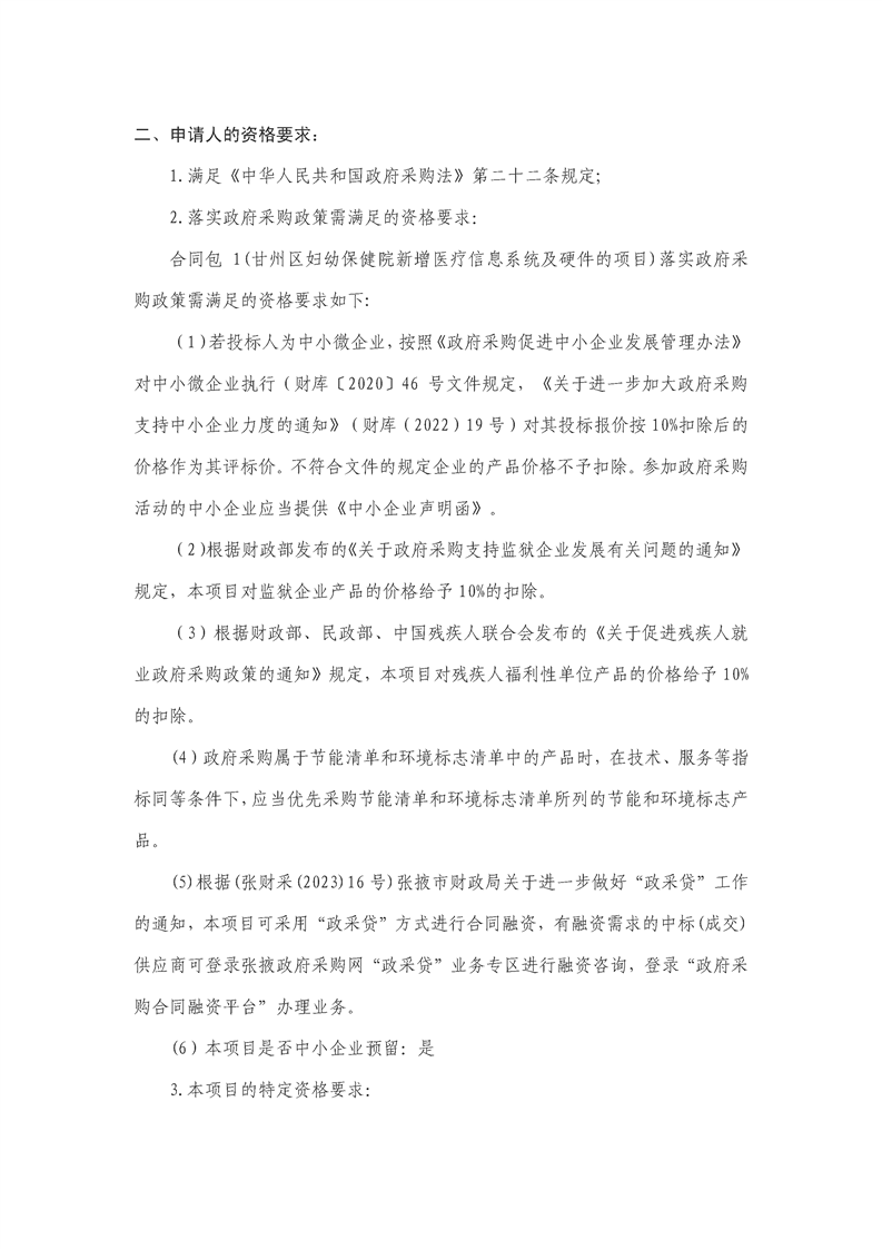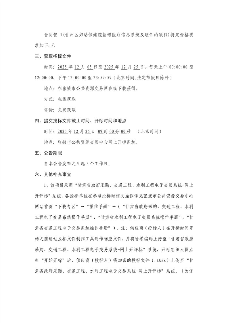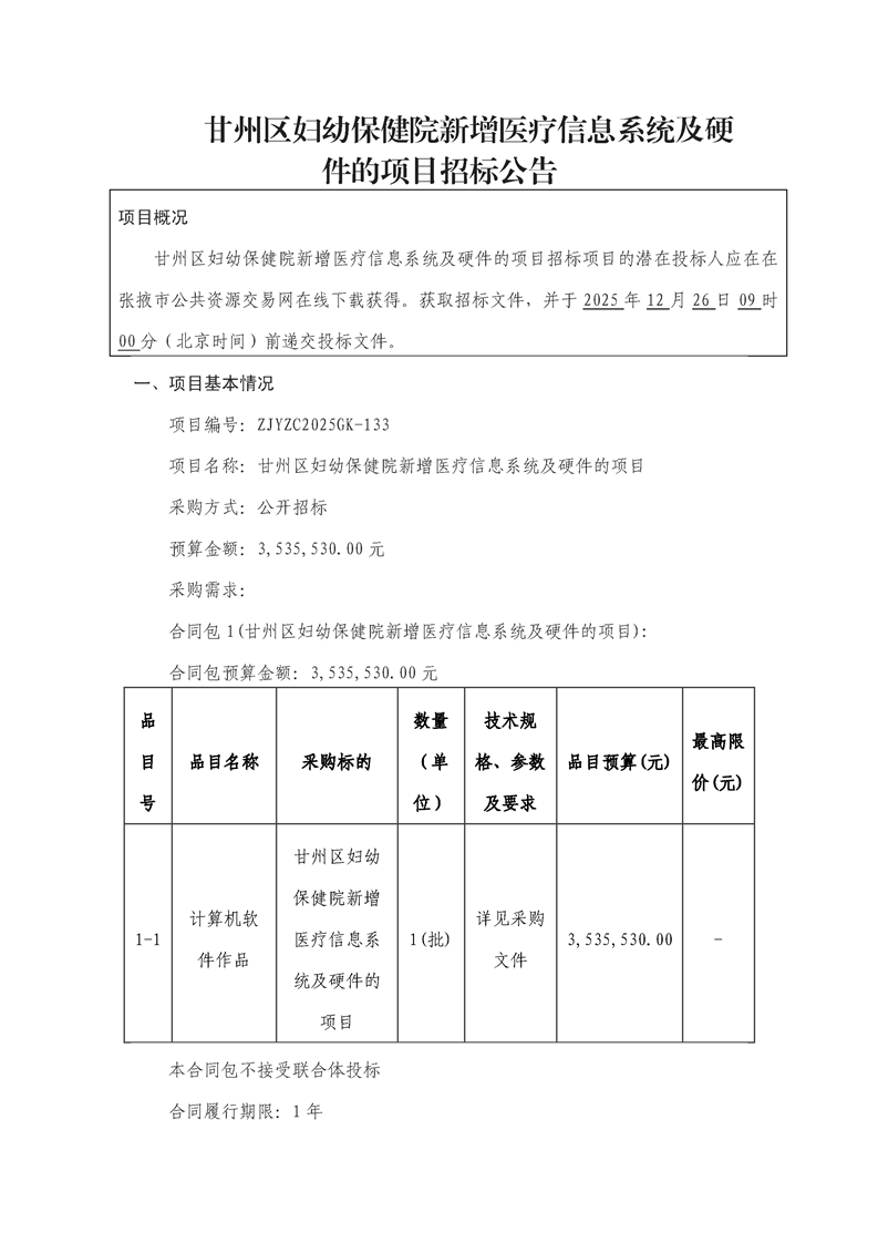 甘州区妇幼保健院新增医疗信息系统及硬件的项目招标公告