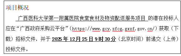 项目名称:广西医科大学第一附属医院食堂食材及物资配送服务项目
