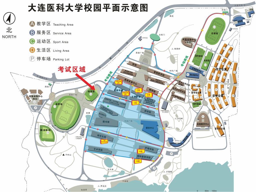 本次考试各考试区域分布情况如图所示,从学校正门或东门步行至各考场需要*****分钟,请考生提前规划好行程,并确认考场所在教学楼的位置,以免耽误考试。