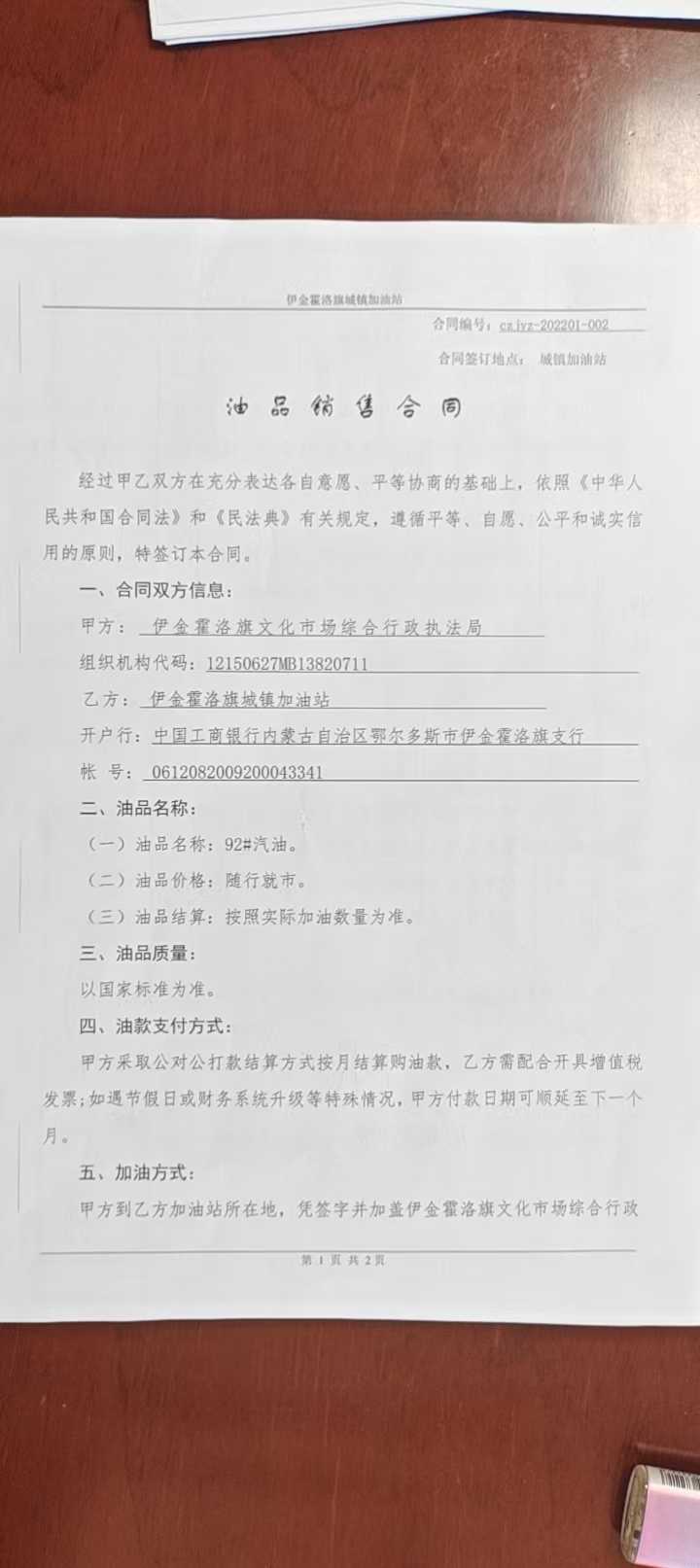 伊金霍洛旗文化市场综合行政执法局油品销售合同政府采购合同公告