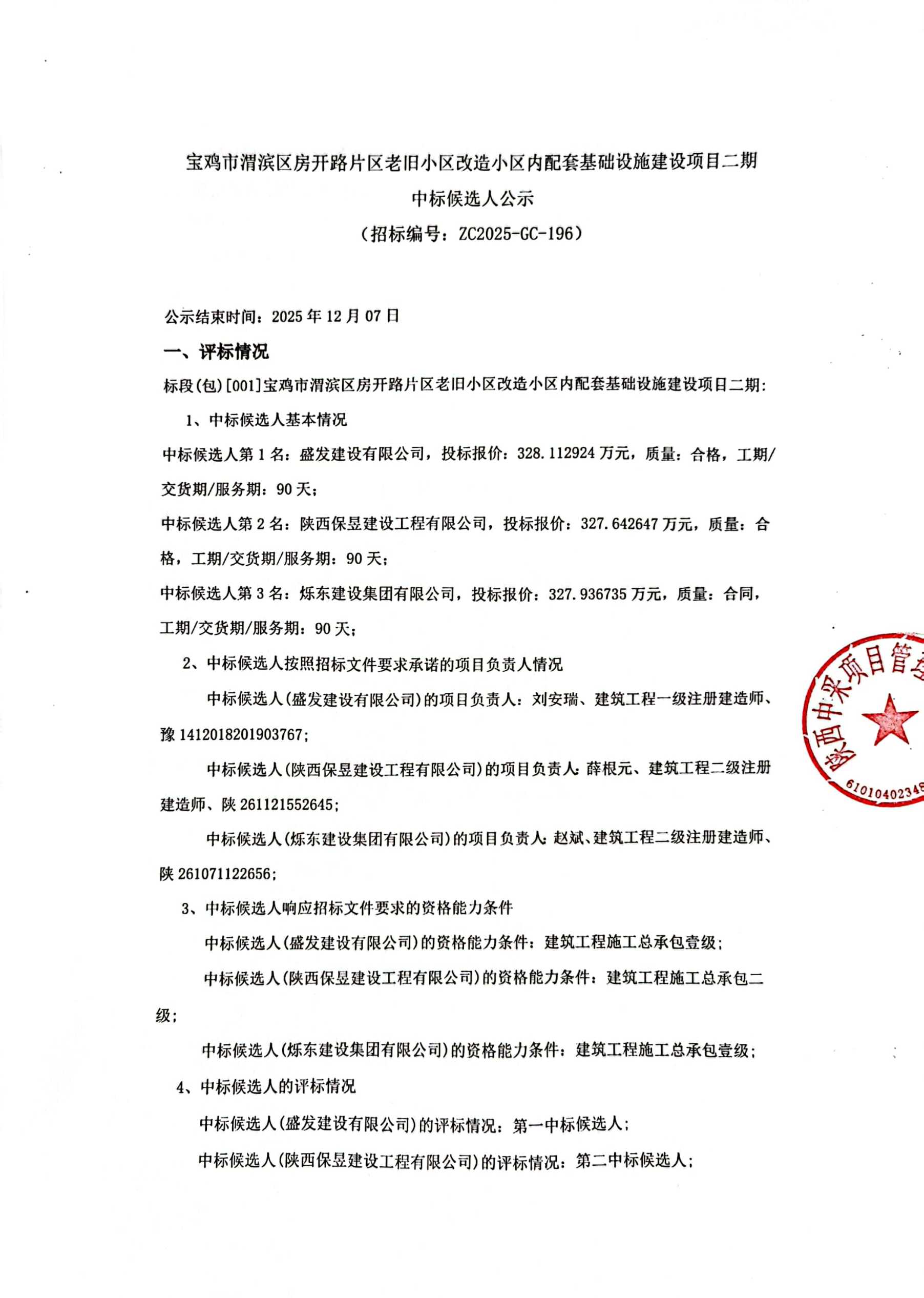 房开路片区老旧小区改造小区内配套基础设施建设项目二期中标候选人公示