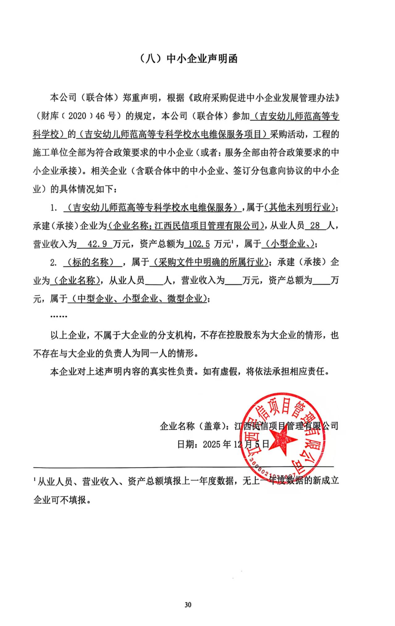 本项目专门面向中小企业采购,不再享受价格评审优惠的扶持政策。江西民信项目管理有限公司的评审报价为:******.**元
