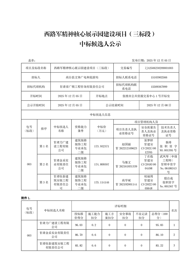 [市本级]西路军精神核心展示园建设项目(三标段)中标候选人公示