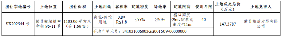 根据《招标拍卖挂牌出让国有建设用地使用权规定》,现将歙县国有建设用地使用权挂牌出让成交结果公示如下: