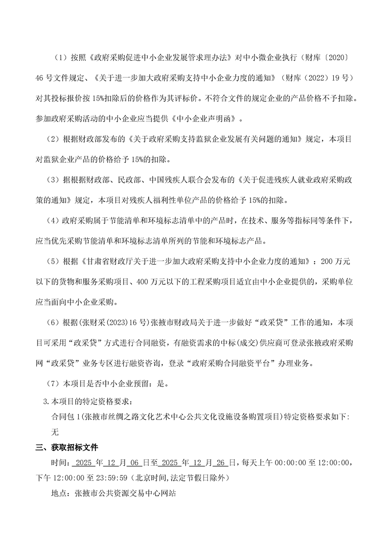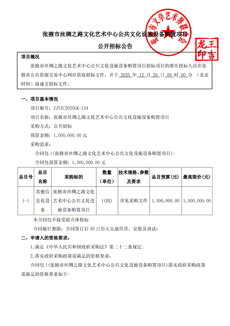 张掖市丝绸之路文化艺术中心公共文化设施设备购置项目公开招标公告采购/资审公告