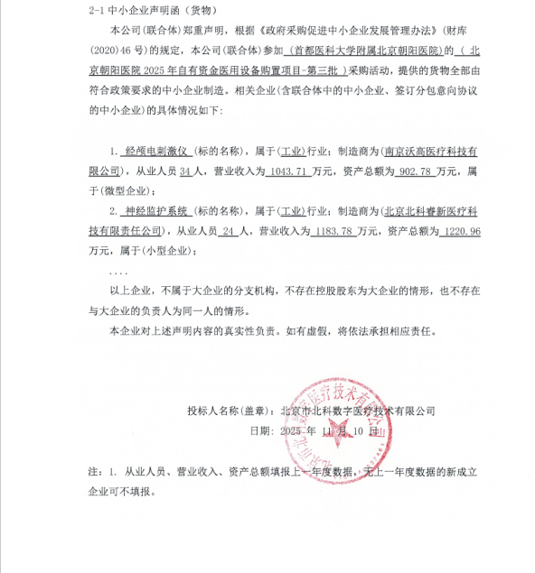 | 北京市北科数字医疗技术有限公司 | 神经监护系统 | ***** ******* *** ** | * | **.*万元 | **.*万元 | |