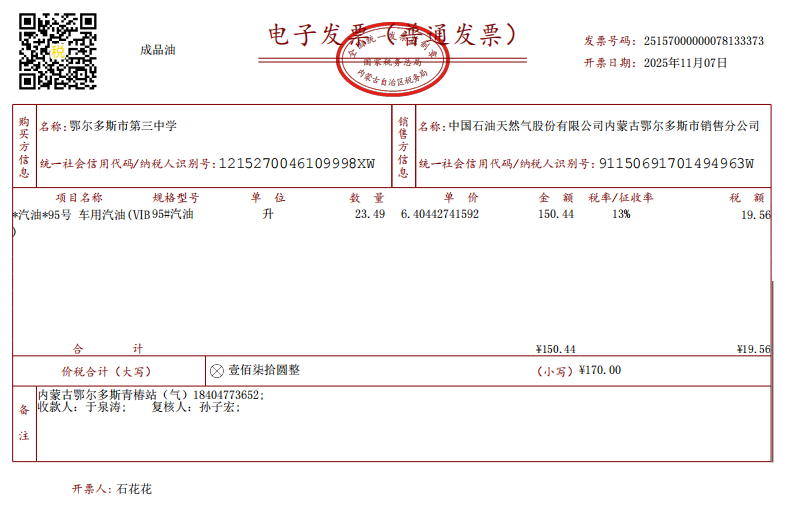 鄂尔多斯市第三中学鄂尔多斯市第三中学采购公务用车汽油政府采购合同公告