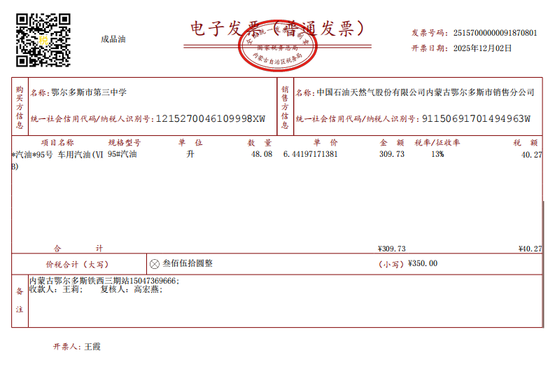 鄂尔多斯市第三中学鄂尔多斯市第三中学采购公务用车汽油政府采购合同公告