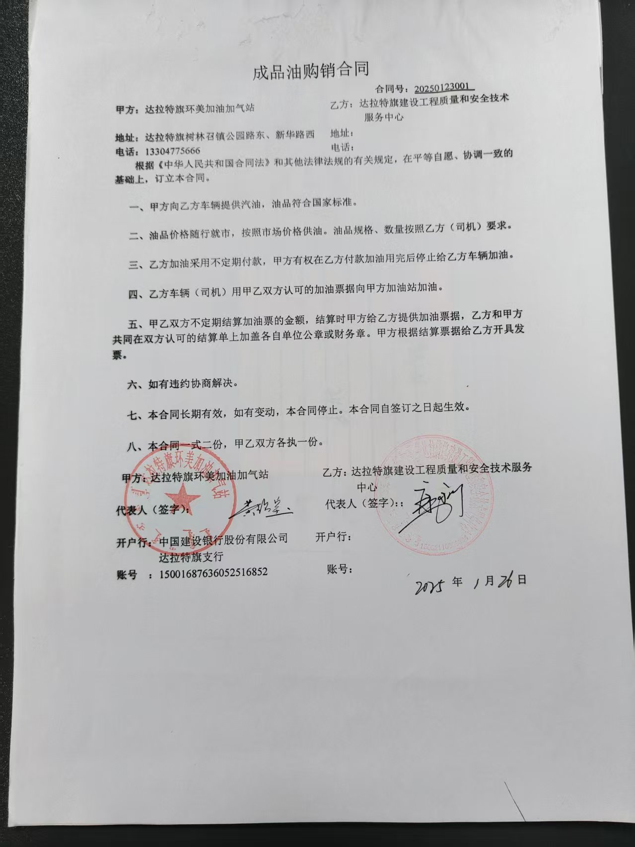 达拉特旗建设工程质量和安全技术服务中心成品油购销合同政府采购合同公告
