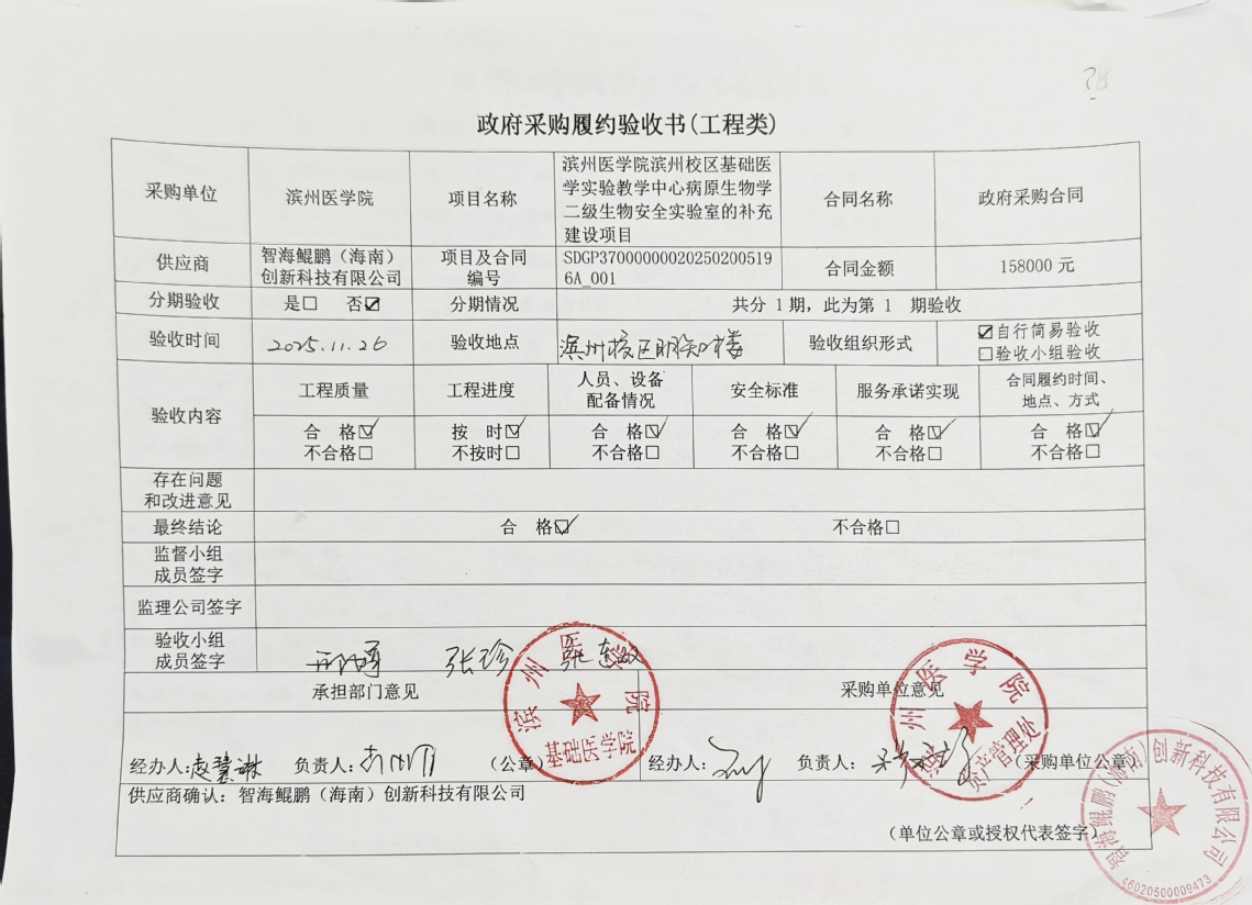 滨州医学院滨州校区基础医学实验教学中心病原生物学二级生物实验室的补充建设项目