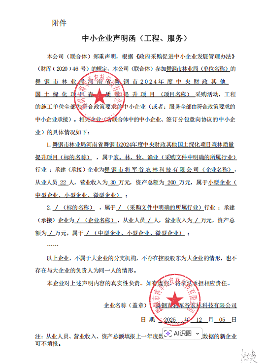 | *、采购项目名称:舞钢市林业局河南省舞钢市****年度中央财政其他国土绿化项目森林质量提升项目 | |||||||||||||||||||||||||||||||