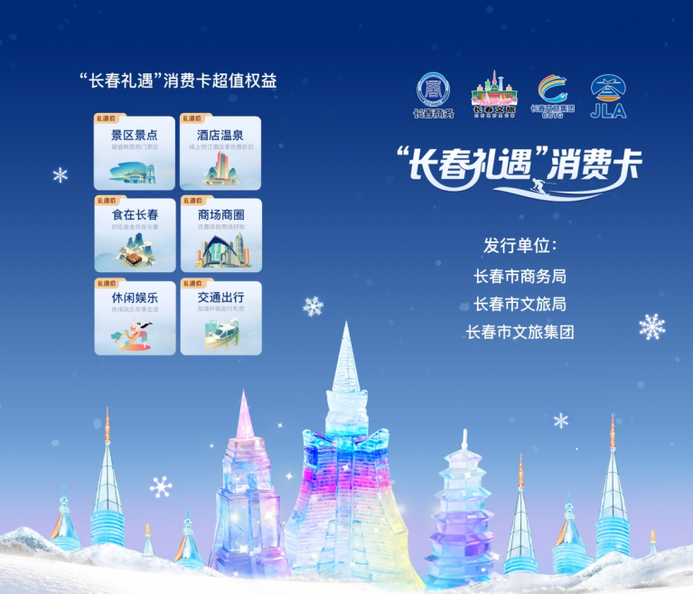 “长春礼遇”消费卡是长春市为游客和本地市民精心推出的优惠礼遇集锦,由商务局、文旅局、文旅集团和龙嘉机场共同推出,礼遇卡汇集全市购物、雪场、景区、餐饮、住宿、出行、娱乐等多业态商家优惠,通过“礼遇惠民、赋能消费”,为广大消费者提供“吃、住、行、游、购、娱”全场景、一站式优惠,一卡通享全城福利。